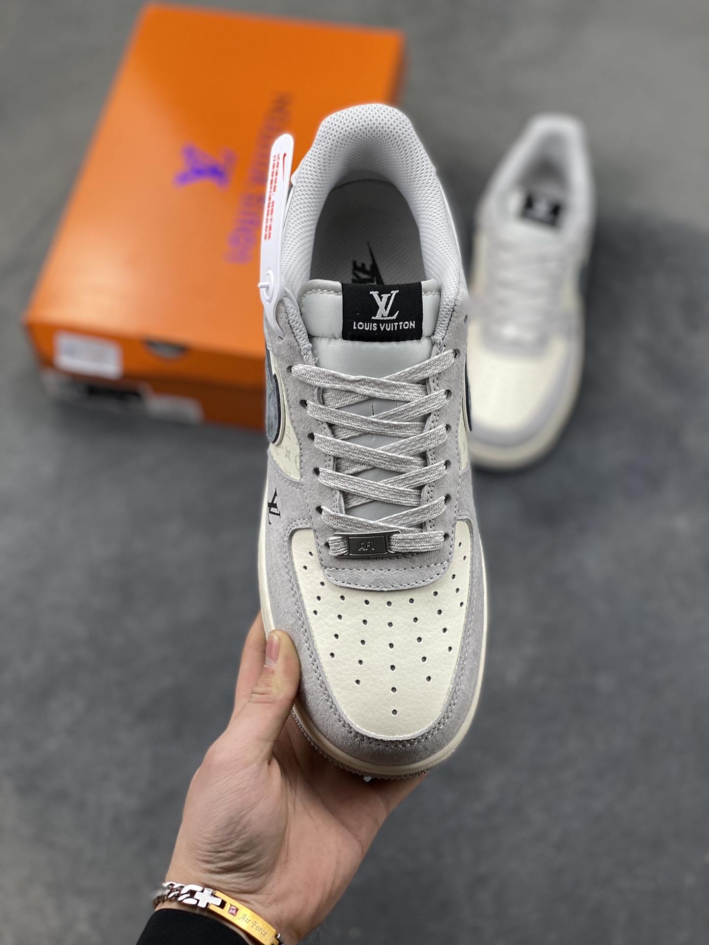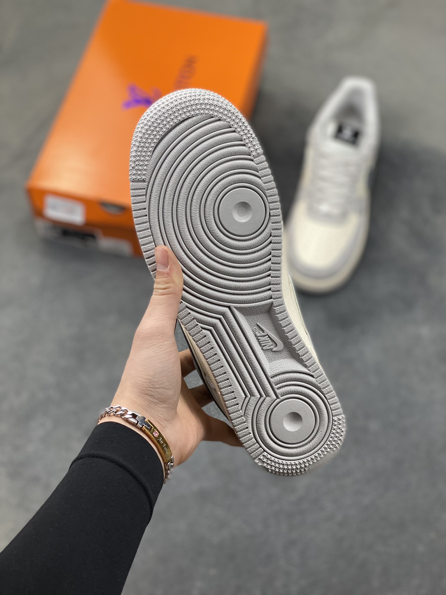 本地自取💰230 Nike Air Force 1 Low x LV联名款|CX5050-Y46 当经典传奇遇上奢品顶流,这双Nike Air Force 1 Low与LV联名的CX5050-Y46,直接把潮流与奢华的融合推到新高度,堪称鞋圈“王炸”联名款!鞋身以雾霾灰麂皮为主调,质感细腻得能触摸到高级感,米白色鞋头与鞋身拼接处暗藏LV经典老花暗纹,低调中透着奢牌的辨识度;鞋侧的Swoosh标志选用深灰磨砂材质,与浅灰鞋身形成层次碰撞,鞋身外侧印刻的“LOUIS VUITTON”字样和LV标识,将联名身份高调彰显,每一处细节都透着匠心设计。 作为Air Force 1的经典款型,脚感依旧在线:内置Air Sole气垫加持,踩屎感轻盈又柔软,日常通勤、逛街暴走都毫无压力;橡胶外底搭配经典的AF1纹路,耐磨性与防滑性兼备,兼顾颜值与实用性。鞋型延续了AF1的百搭基因,不管是搭配牛仔裤、运动裤还是休闲西装,都能轻松打造高街轻奢风,轻松成为穿搭中的点睛之笔。这款CX5050-Y46联名款,既是Nike空军一号的经典传承,也是LV奢品美学的潮流演绎,不管是收藏摆柜还是上脚出街,都是彰显品味与潮流态度的不二之选,潮人必备的“梦中情鞋”就是它!尺码:36 36.5 37.5 38 38.5 39 40 40.5 41 42 42.5 43 44 44.5 45