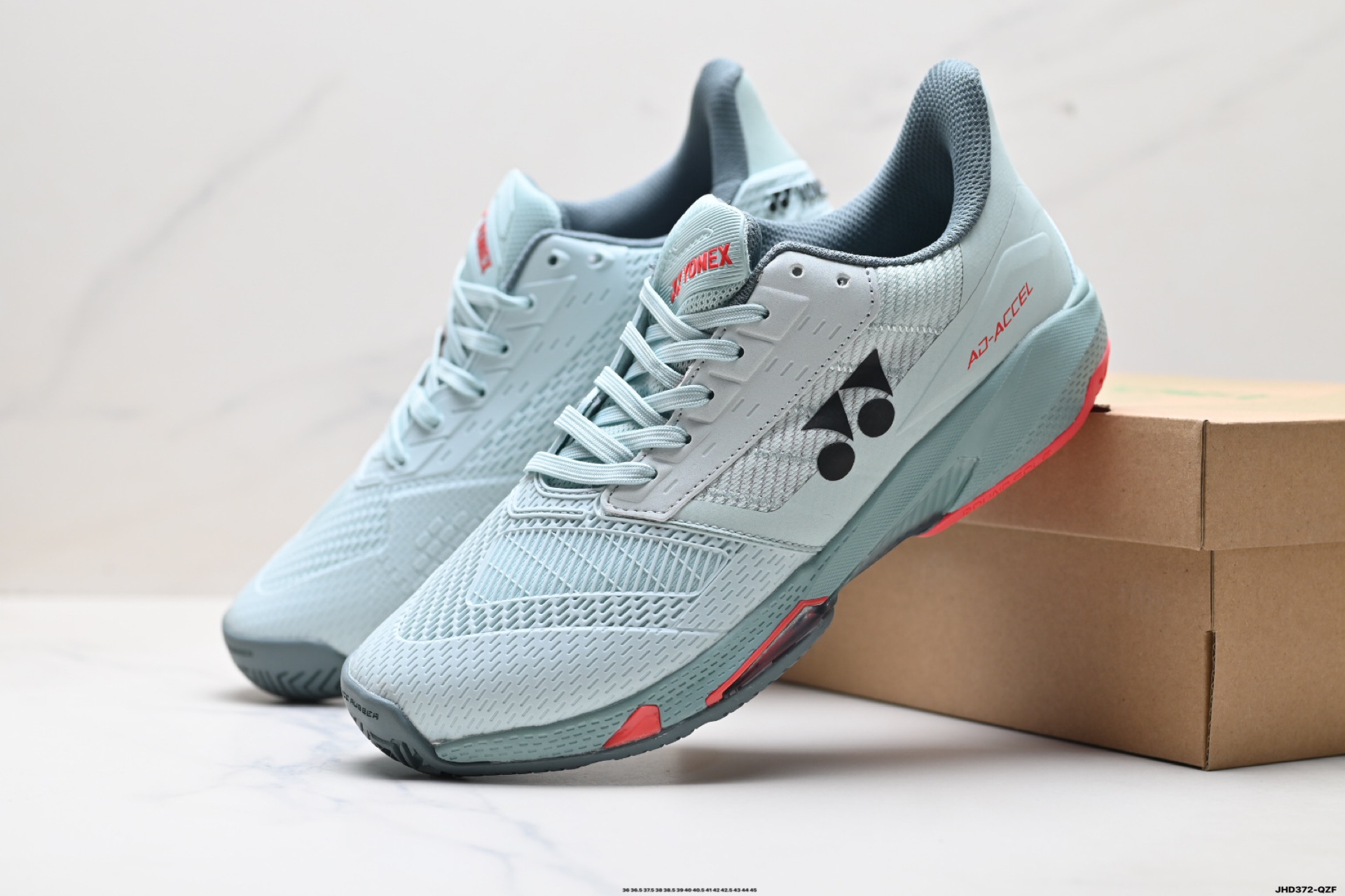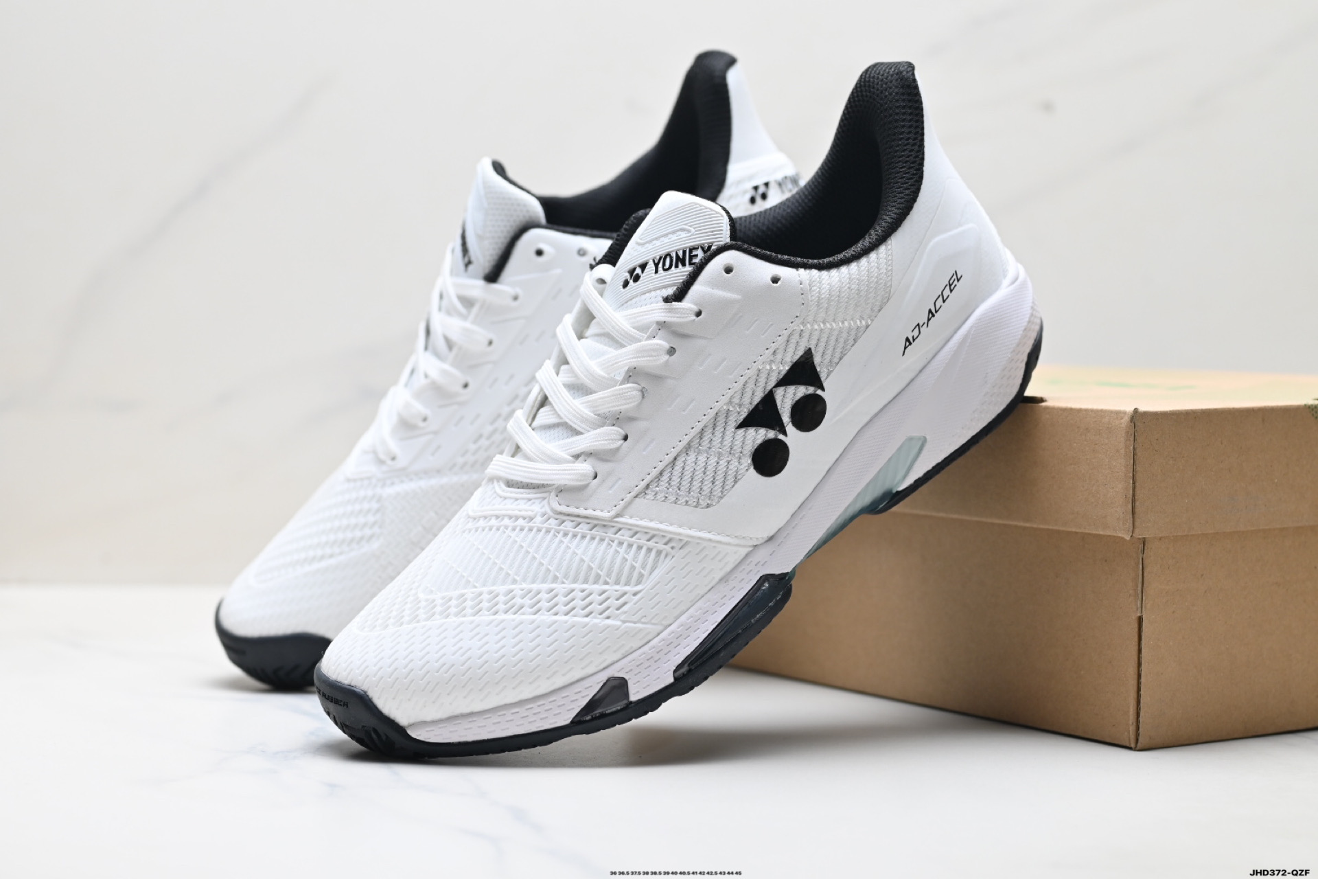 🈴️💰170 公司级✅YONEX尤尼克斯网球鞋男女专业比赛训练鞋轻量耐磨运动鞋 弯曲+加长TPU翅片提升变向速度ACCEL BOOSTER的中心部分为外转力提强度,并具有灵活性,通过控制足部的弯折情况、来提升变向速度 动力垫科技轻质、不易疲劳,动力垫是YONEX独家开发的轻量吸震材料,落地时能有效缓解冲击,将其能量转换为下一步的动力 货号:SHTAAMA 尺码:36 36.5 37.5 38 38.5 39 40 40.5 41 42 42.5 43 44 45 lD:JHD372-QZF