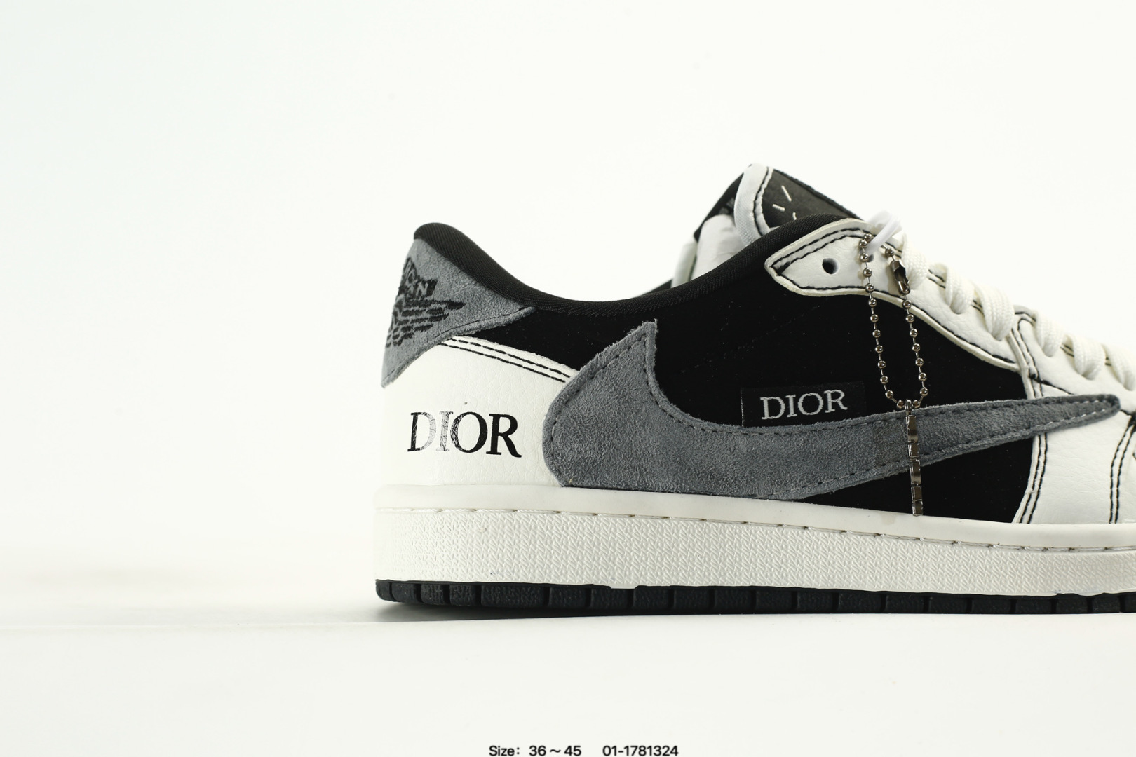 💰120 奢潮碰撞,低帮新章|Air Jordan 1 Low x Dior联名款 当Air Jordan 1 Low的传奇篮球基因邂逅Dior的高奢时尚底蕴,这双XS2025-082联名款成为奢潮跨界的惊艳之作,将街头的动感与高定的精致融合到极致。鞋身以酒红皮革、米白皮质与灰色翻毛皮革拼接打造,材质的细腻纹理与色彩的层次碰撞,瞬间勾勒出高级又极具辨识度的视觉轮廓。解构主义设计的双层Swoosh打破常规,灰色翻毛Swoosh叠搭暗藏的细勾,鞋侧印刻的“DIOR”标识、鞋舌处的金属挂饰,每一处细节都暗藏联名的匠心巧思。鞋头的小勾刺绣、后跟的酒红包边,既延续了Air Jordan 1 Low的经典骨架,又为鞋款注入了Dior标志性的奢雅灵魂。 米白中底搭配酒红外底,延续了AJ1 Low经典的复古脚感与运动属性,让奢潮风格不再局限于陈列,更能适配日常穿搭的多元场景。无论是篮球文化爱好者的收藏清单,还是高街奢潮的造型打造,这双Air Jordan 1 Low x Dior都能以奢潮碰撞的独特气质,让你轻松成为足下潮流的焦点。 码数:如图 890 编码:01-1781324