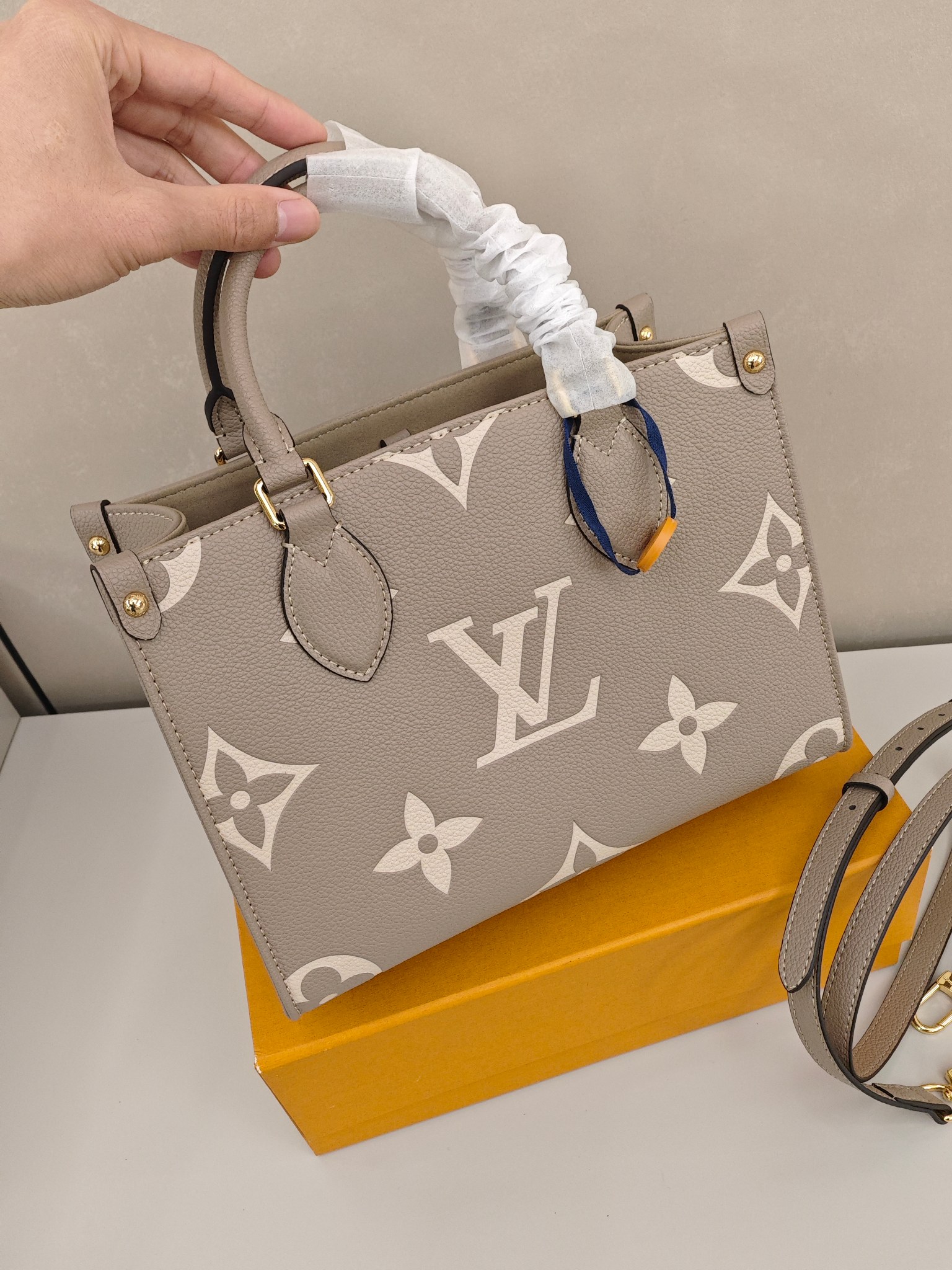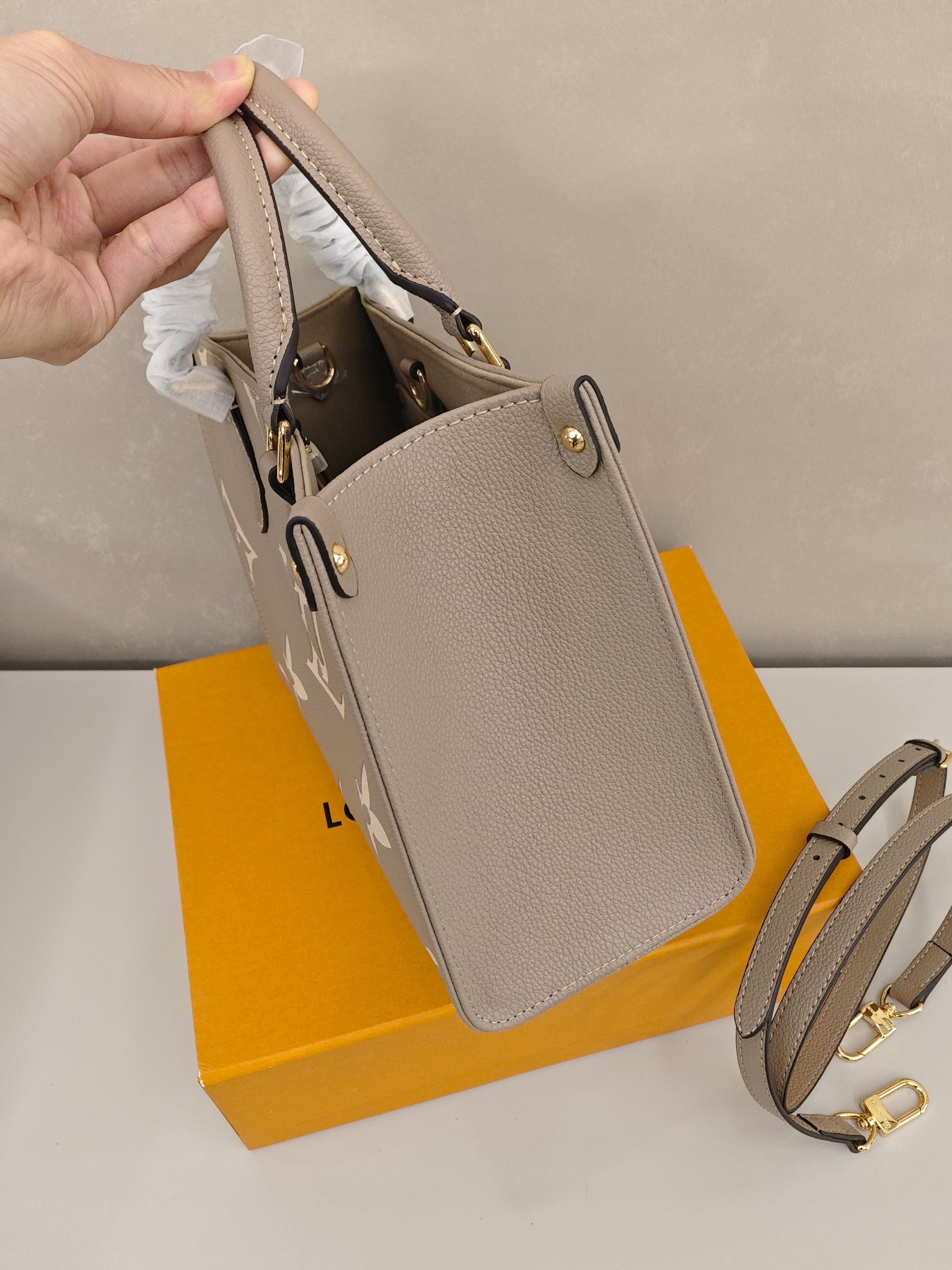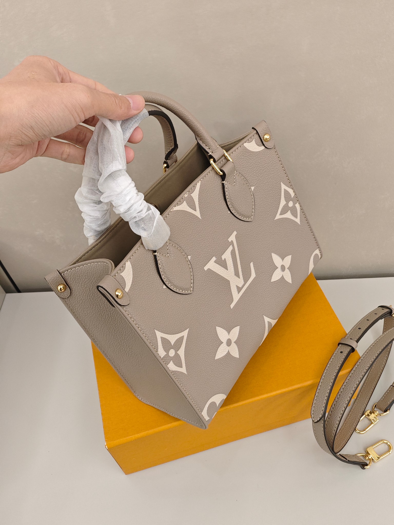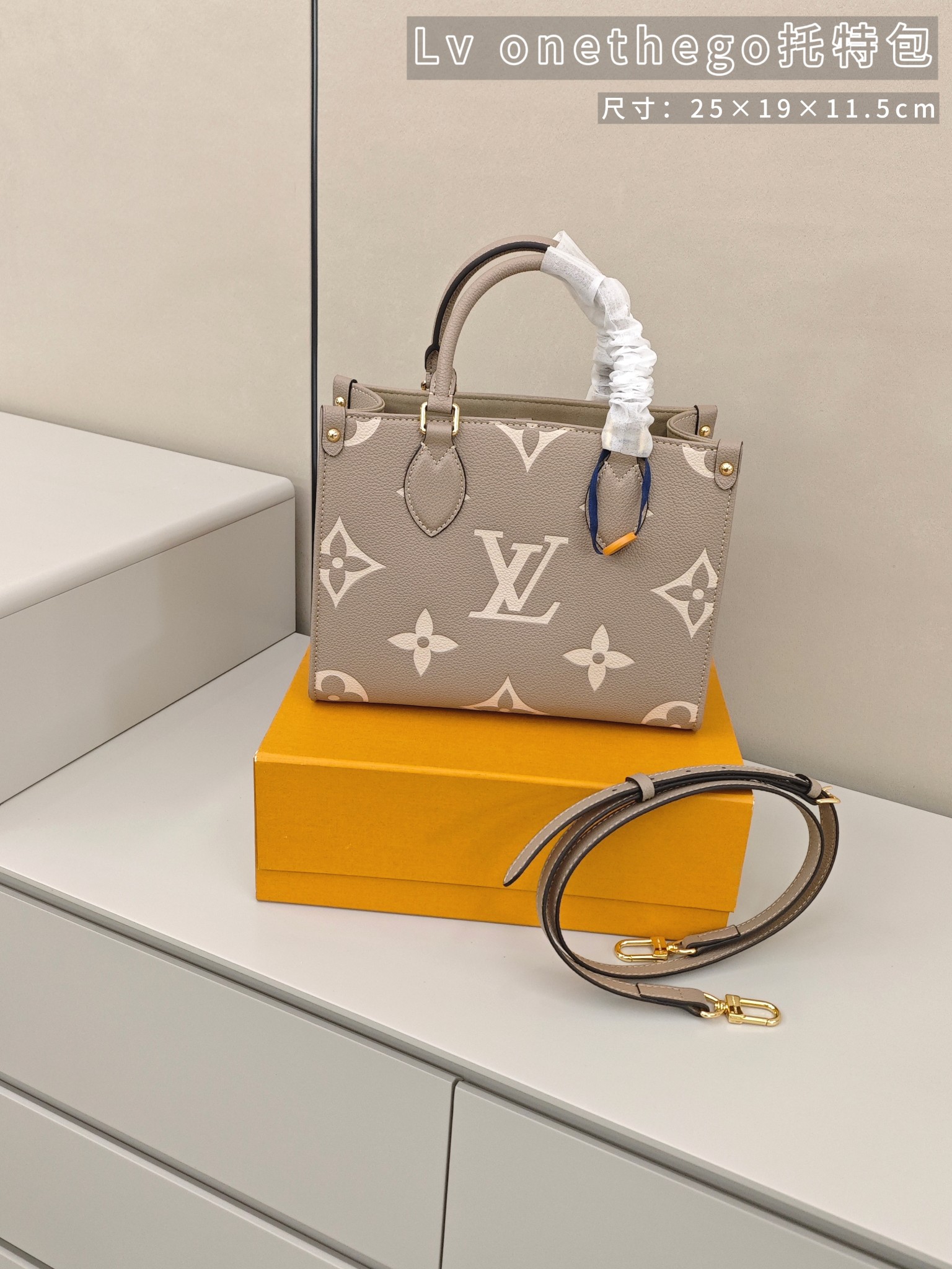 Lv onethego托特包💰260 尺寸:25×19×11.5cm 经典Monogram压纹与柔雾灰皮质,手提肩背双模式解锁百变造型,细腻的荔枝纹肌理搭配鎏金五金,将法式精致藏进日常,通勤约会皆能hold住全场,是值得收藏的轻奢质感之选。