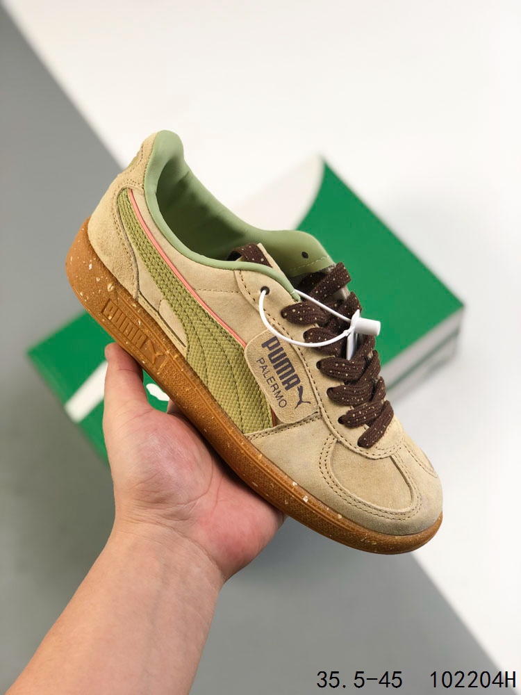 🈴️ 💰130 Puma彪马男女通用Palermo OG 标贴运动鞋 鞋款复刻,重温足球文化风潮! 近日 PUMA 将经典鞋款 Palermo 重新带回市场,让众多鞋迷和足球爱好者重温上世纪80年代的足球文化风潮。这一经典复刻版本将延续当年的标志性蓝白配色,并搭载复古的T字型鞋头设计和经典的棕色胶底,以传统规划语言诠释了足球文明的魅力。 此次的复刻版本完美还原了当年经典设计,同时注入了现代元素。鞋身点缀着烫金 PUMA Logo,与鞋尾的美洲狮 Logo 相呼应,彰显了品牌的标志性风采。经典的蓝白配色则让人们仿佛回到了充满激情和活力的80年代足球场上。 尺码:如图 ID:102204H
