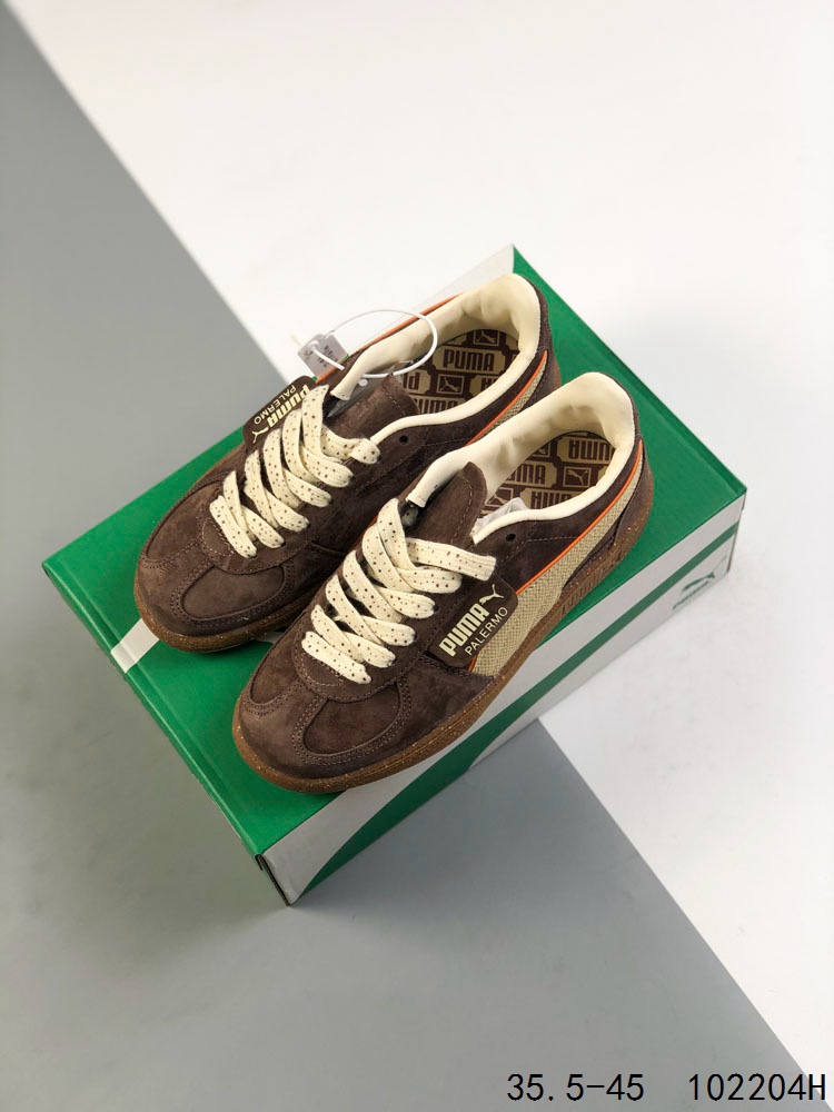 💰130 Puma彪马男女通用Palermo OG 标贴运动鞋 鞋款复刻,重温足球文化风潮! 近日 PUMA 将经典鞋款 Palermo 重新带回市场,让众多鞋迷和足球爱好者重温上世纪80年代的足球文化风潮。这一经典复刻版本将延续当年的标志性蓝白配色,并搭载复古的T字型鞋头设计和经典的棕色胶底,以传统规划语言诠释了足球文明的魅力。 此次的复刻版本完美还原了当年经典设计,同时注入了现代元素。鞋身点缀着烫金 PUMA Logo,与鞋尾的美洲狮 Logo 相呼应,彰显了品牌的标志性风采。经典的蓝白配色则让人们仿佛回到了充满激情和活力的80年代足球场上。 尺码:如图 ID:102204H