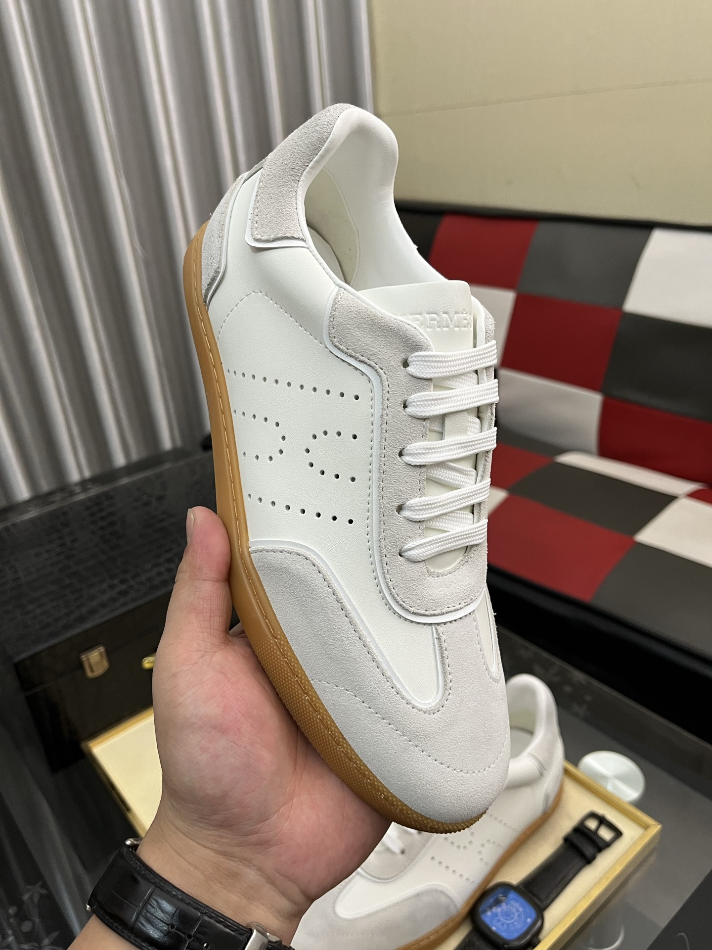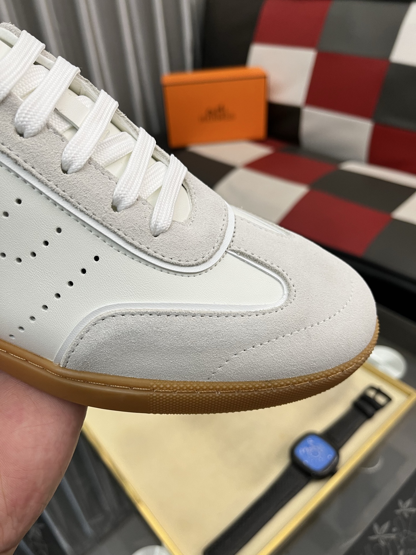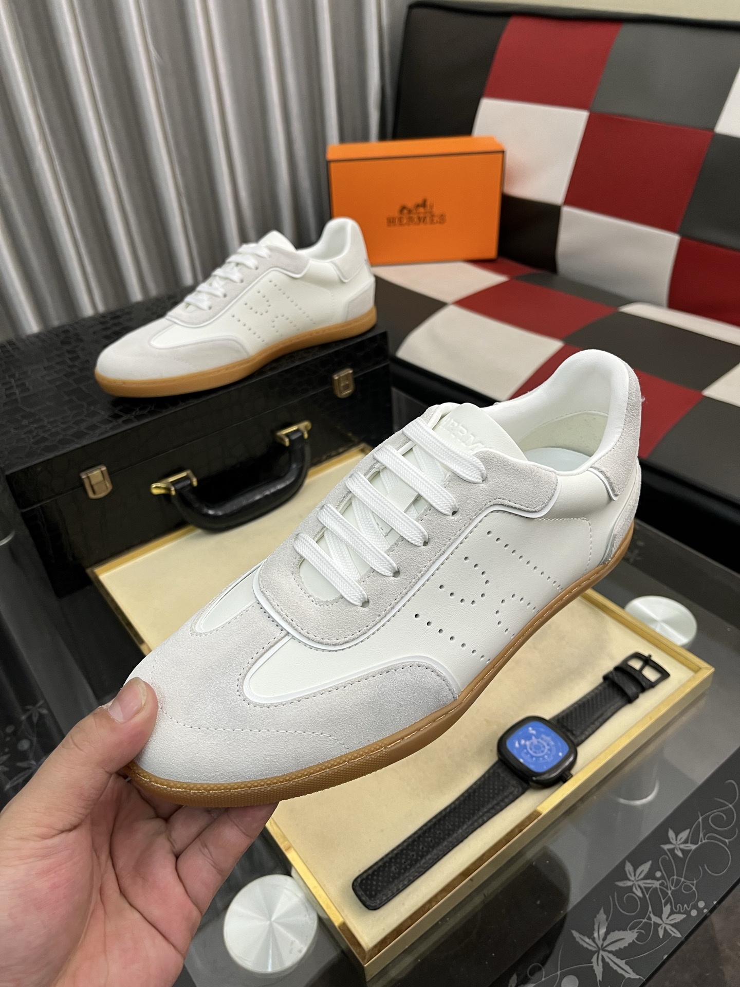 出厂价:300⌚️⌚️ H家爱马仕男士休闲运动鞋 麂皮山羊皮运动鞋装饰撞色图案和标志性“H”细节,配送专柜精美包装🛍📦