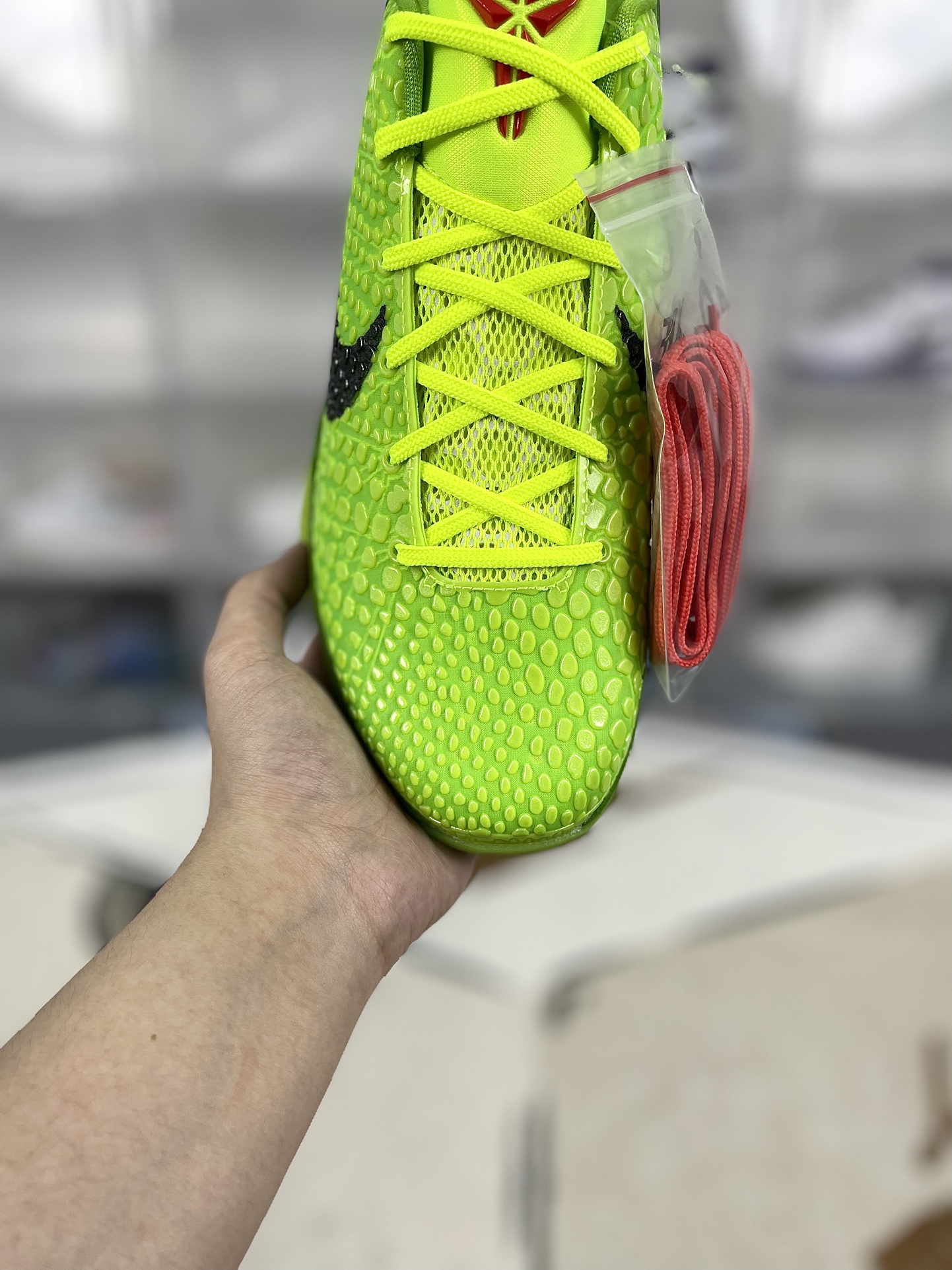 本地💰440 ▪️GX纯原 实战天花板 Nike Zoom Kobe 6 Protro "Green Apple" 科比6 青蜂侠 2020复刻 低帮 Air Zoom 实战篮球鞋 男女同款 荧光绿 科比6代 ▪️Nike Zoom Kobe VI是耐克公司与篮球巨星科比·布莱恩特于2010年12月7日共同发布的经典鞋款。这款鞋的灵感源自科比在球场上的外号“黑曼巴”,设计中巧妙融入了黑曼巴蛇的凶猛与精准元素。它采用了三层鞋面设计,内层为网眼材质,中层运用Flywire技术,外层则是模仿蛇皮纹理的独特聚氨酯“凸点”,既耐磨又轻盈透气。在科技配置上,科比6代配备了Nike Zoom气垫单元,提供卓越的缓震与回弹性能,同时中底采用Phylon注塑材料,更好贴合足部,提升穿着的舒适度与稳定性。此外,还创新性地使用了双层记忆海绵鞋垫,可根据脚形自动调节,带来个性化的贴合体验。总的来说,科比6代不仅功能性强,而且是科比个人风格与耐克创新科技的完美结合。 ▪️尺码:40-50.5(40 40.5 41 42 42.5 43 44 44.5 45 45.5 46 47.5 48.5 49.5 50.5) ▪️货号:CW2190-300/429659-701/429659-701