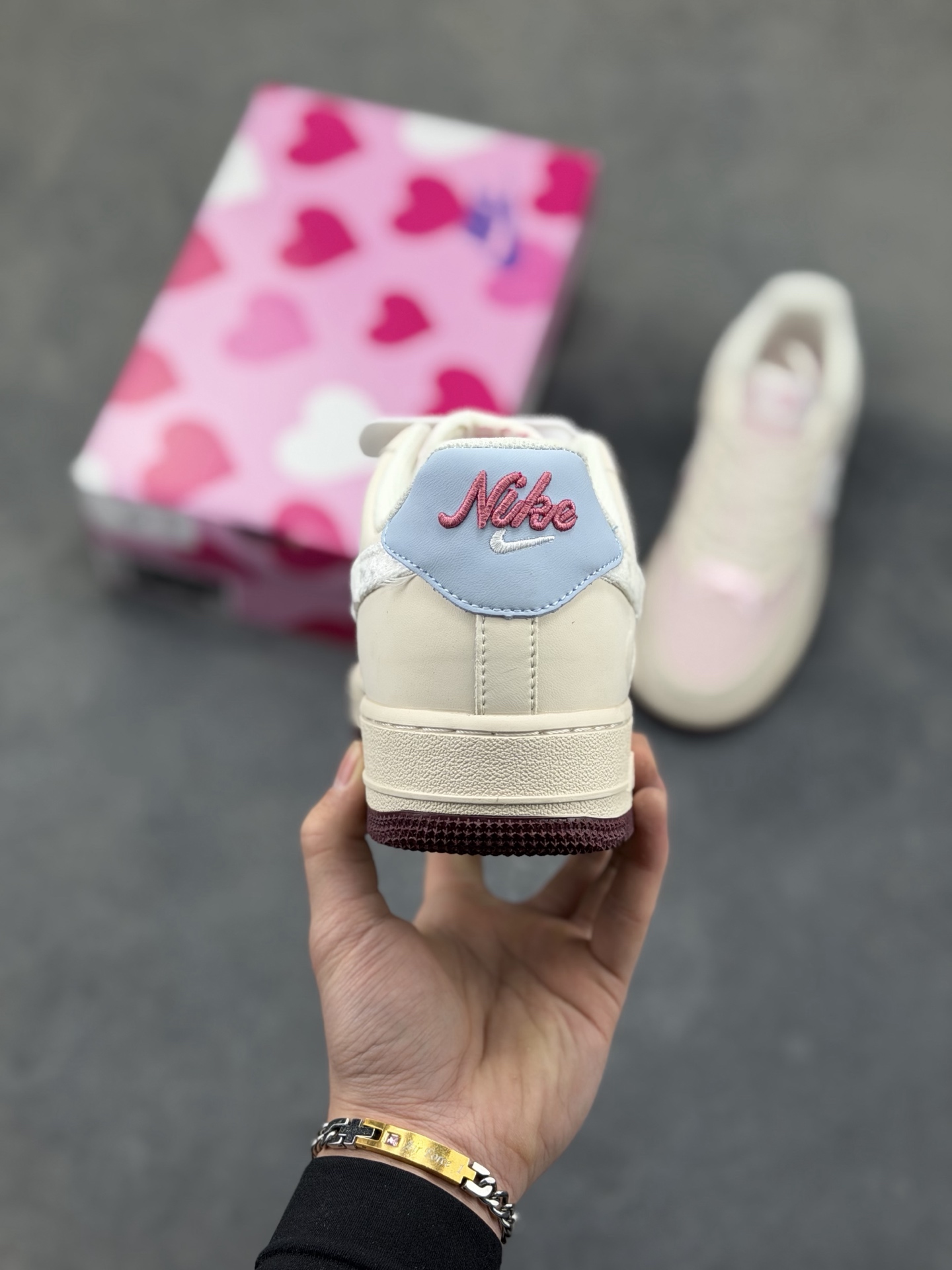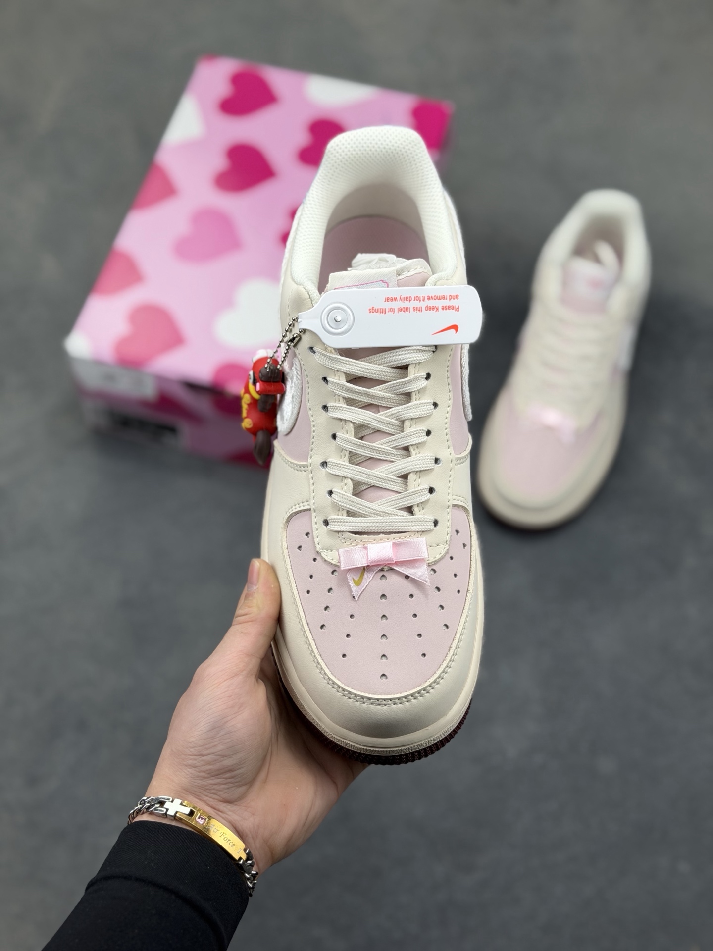 本地自取💰230 🌸 温柔甜酷风 · Nike Air Force 1 Low 粉雾撞色款 当经典空军一号遇上马卡龙撞色,这双Air Force 1 Low把春日甜酷氛围感直接穿在脚下。米白与樱花粉拼接的鞋身是温柔底色,白色丝绒质感的Swoosh在粉调上格外细腻,后跟一抹浅蓝点缀,让整体色彩层次丰富又和谐。深酒红色外底与浅色鞋身形成撞色,在温柔中增添了一丝复古酷感。它保留了Air Force 1标志性的复古轮廓与Air气垫缓震,既满足日常出街的舒适脚感,又能通过甜酷配色成为造型亮点。无论是搭配百褶裙打造学院风,还是用牛仔裤营造美式复古感,都能轻松适配货号:DF0188-140 Size:36 36.5 37.5 38 38.5 39 40 40.5 41 42 42.5 43 44 44.5 45