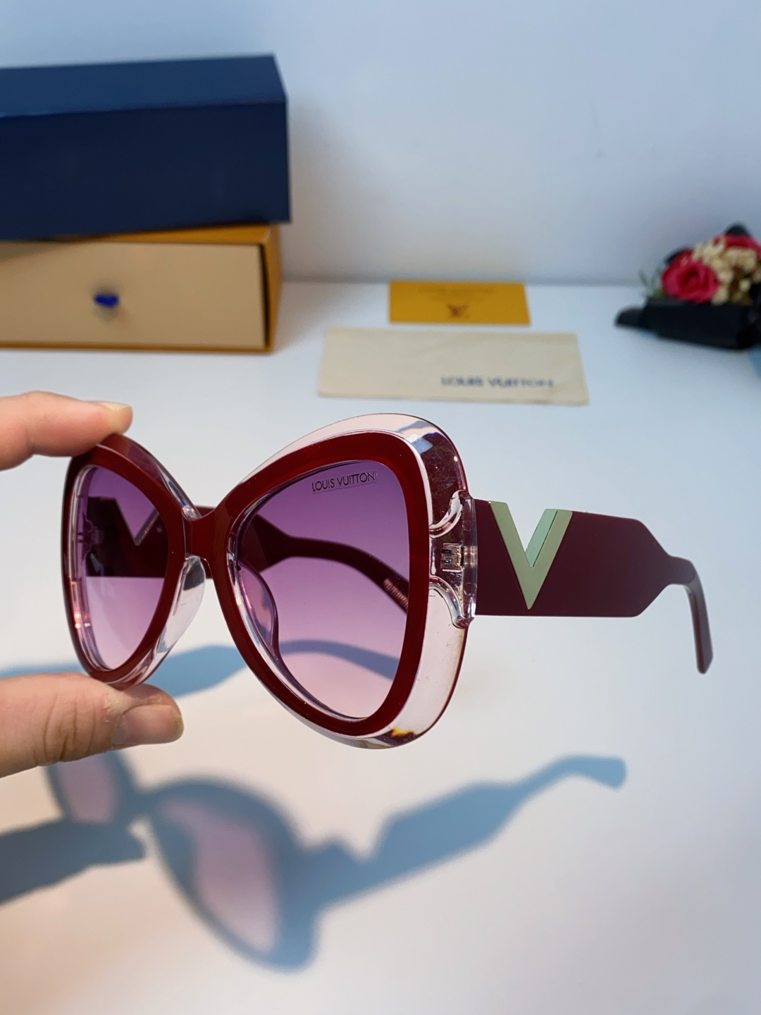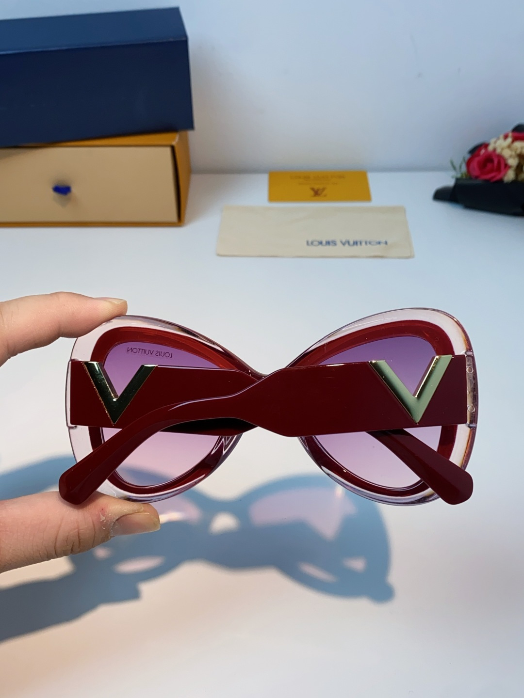 🉐️140 LOUIS VUITTON 路易威登 欧美复古大框蝶形缺口爱心太阳眼镜男女圆脸显瘦嘻哈蹦迪朋克墨镜 女士墨镜