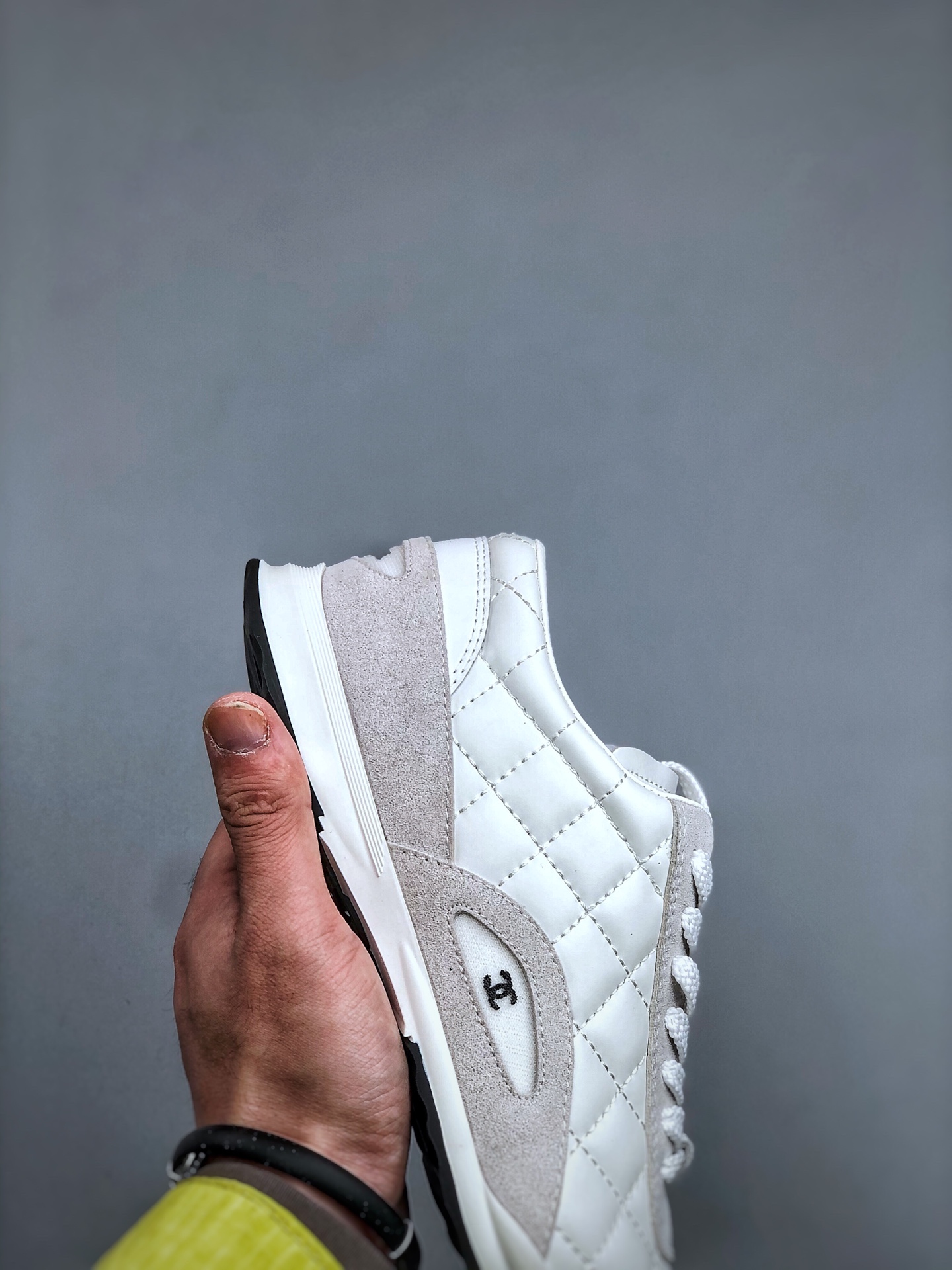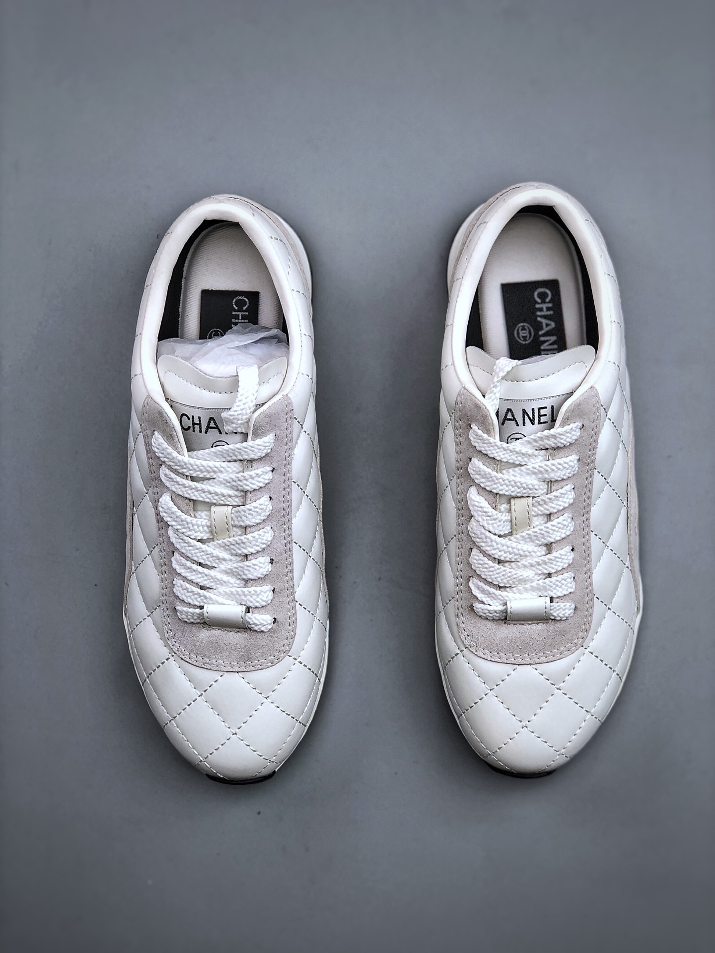 💰480 Chanel 香奈儿26C新款菱格德训鞋 超轻便舒适的一款 黑色白色牛皮款 百搭小白鞋 款式搭配不会出错 牛反绒+羽绒布撞色搭配 清新且活力满满 侧面压印logo 上脚很秀气 鞋面原版定制材料 原版大底 鞋面:牛反绒+羽绒布全牛皮 尺码:35 36 37 38 39 40