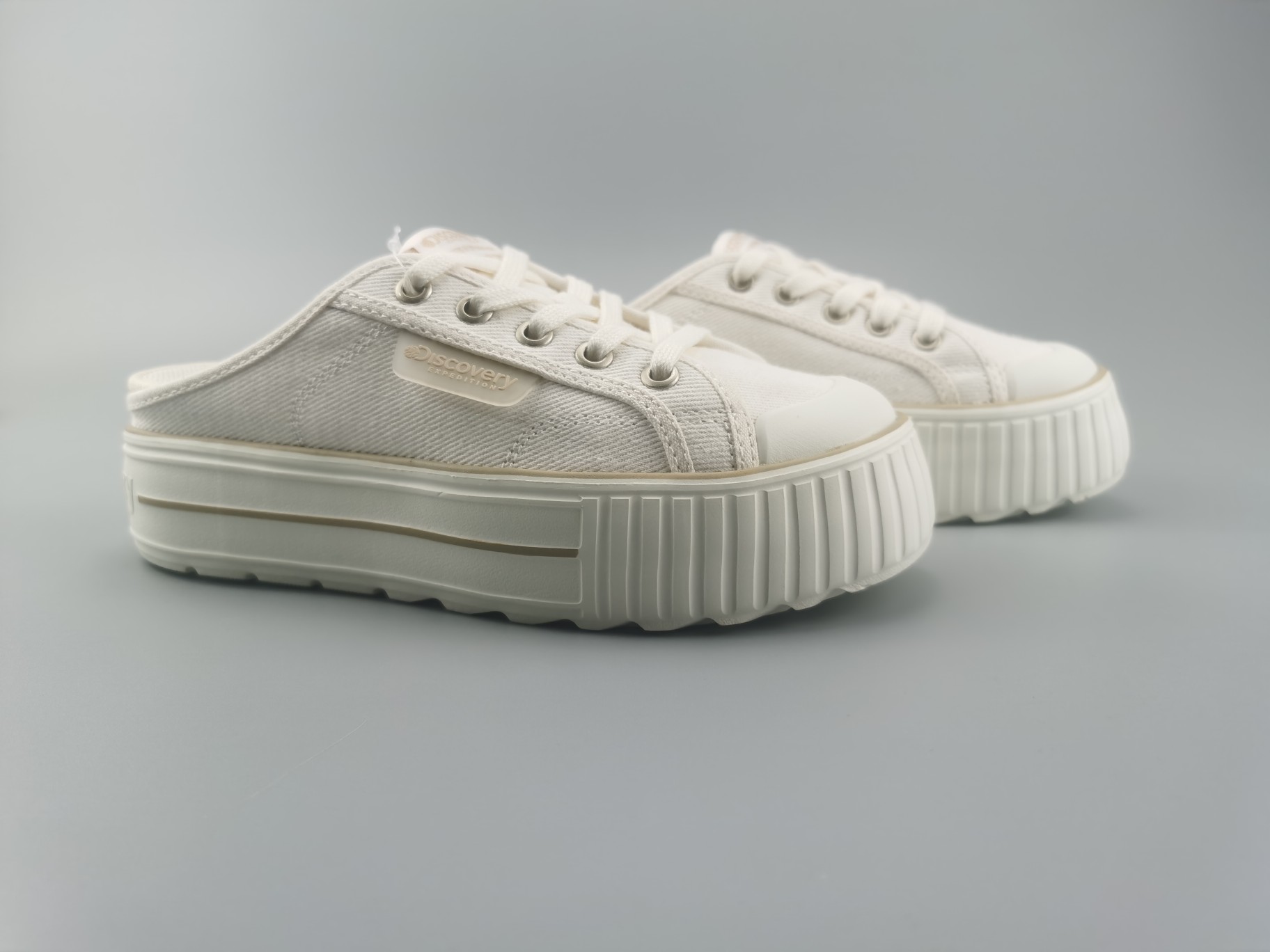 ♨️简介:刘海同款探索仕DISCOVERY半拖春夏女厚底增高低帮休闲系带拼色帆布鞋潮牌 探索仕discovery 夏季新款松糕超轻帆布百搭半拖1:1出货:35-36-37.5-38-39