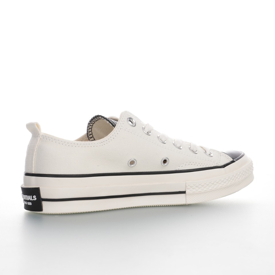 💰100【新品实拍篇】💯男女鞋真标硫化工艺#原厂铝楦开发版型#聚氨酯硅蓝PU中底❗2020ss美国高街潮牌Fear of God副牌ESSENTIALS x Converse Chuck Taylor All Star 1970s OX"Beige/Black"复刻低帮帆布硫化板鞋“帆布米白黑皮革” 尺码:35 36 36.5 37 37.5 38 39 39.5 40 41 41.5 42 42.5 43 44 条码编码:2304328000(注意:已变动!) 洛杉矶街头时尚品牌 Fear of God 副线 ESSENTIALS 继去年与 Converse 无预警推出联乘 Chuck 70 鞋款后,今次的联乘系列延续去年的简约风格,在设计上以灰、米白两色呈现,外层为灰色.黑色.米色,鞋舌与内层为米色之设定,而后方左侧标签处则有「ESSENTIALS Fears Of God」字样凸显出 ESSENTIALS 与 Converse 之品牌,特点中间鞋舌为皮质,鞋带可以从后跟拉条穿过更加个性,细节还是有一点的。 如此百搭的风格相信不少鞋迷应该会将之作为自己鞋柜的囊中之物。