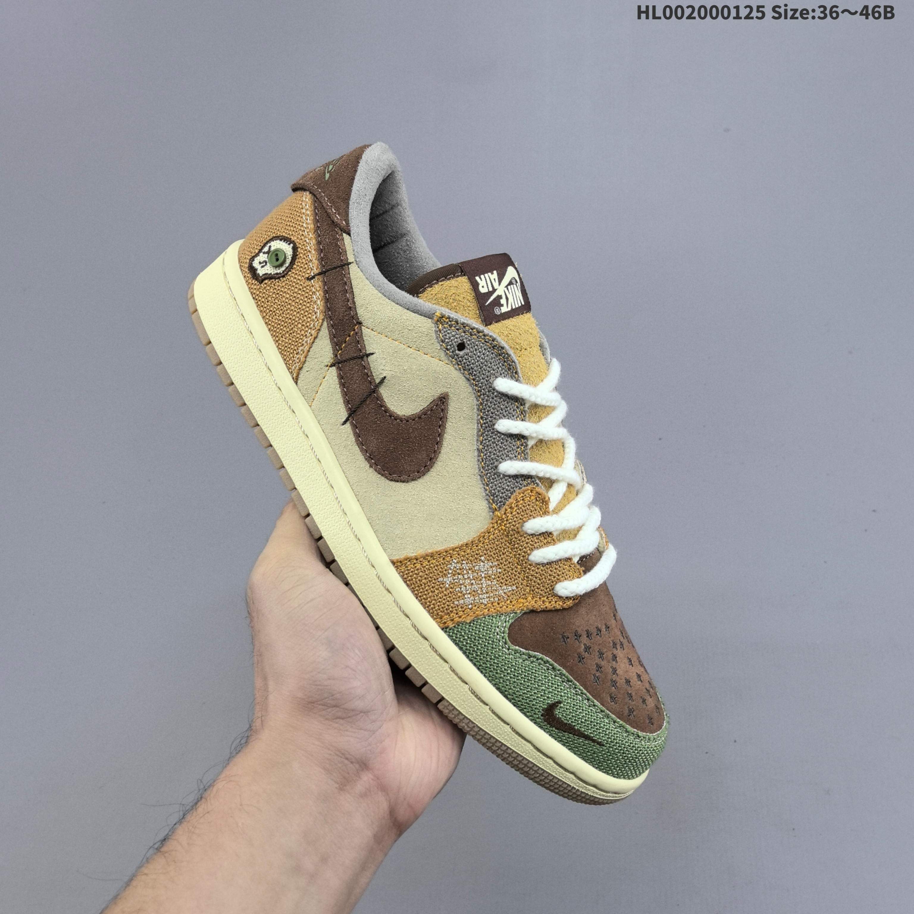 💰200 头层带半码 Zion Williamson x Air Jordan 1 Retro Low OG "Voodoo" 低帮 倒勾巫毒娃娃 AJ1 乔丹1代 aj1 乔1 低邦 倒勾棕色鸳鸯 乔丹篮球鞋系列 鞋面材质选用绒面革和帆布材质并以不对称的设计出现,麻绳鞋带、缝补、纽扣骷髅头等细节元素点明Voodoo主题;不仅如此,与以往的Air Jordban 1 Low OG相比,此番在鞋头的迷你 Swoosh 以倒勾出现、鞋舌绣标与后跟位置全都使用反向Nike Air和Wings Logo出现,另外在Wings Logo贴片背面还饰有Voodoo与Zion相结合的绘画图案,刚好与鞋垫上的图案呼应。后跟外侧还有骷髅头造型贴片以及纽扣眼点缀,进一步彰显巫毒娃娃主题,鞋头是以十字缝线布局,最后就是超多的细节设计,拼接的缝线、最后以米白中底搭配棕色橡胶外底完善整体设计收尾。 货号:DZ7292-200(2022.10发售) 尺码:36 36.5 37.5 38 38.5 39 40 40.5 41 42 42.5 43 44 44.5 45 46 HL002000125 Size:36~46B