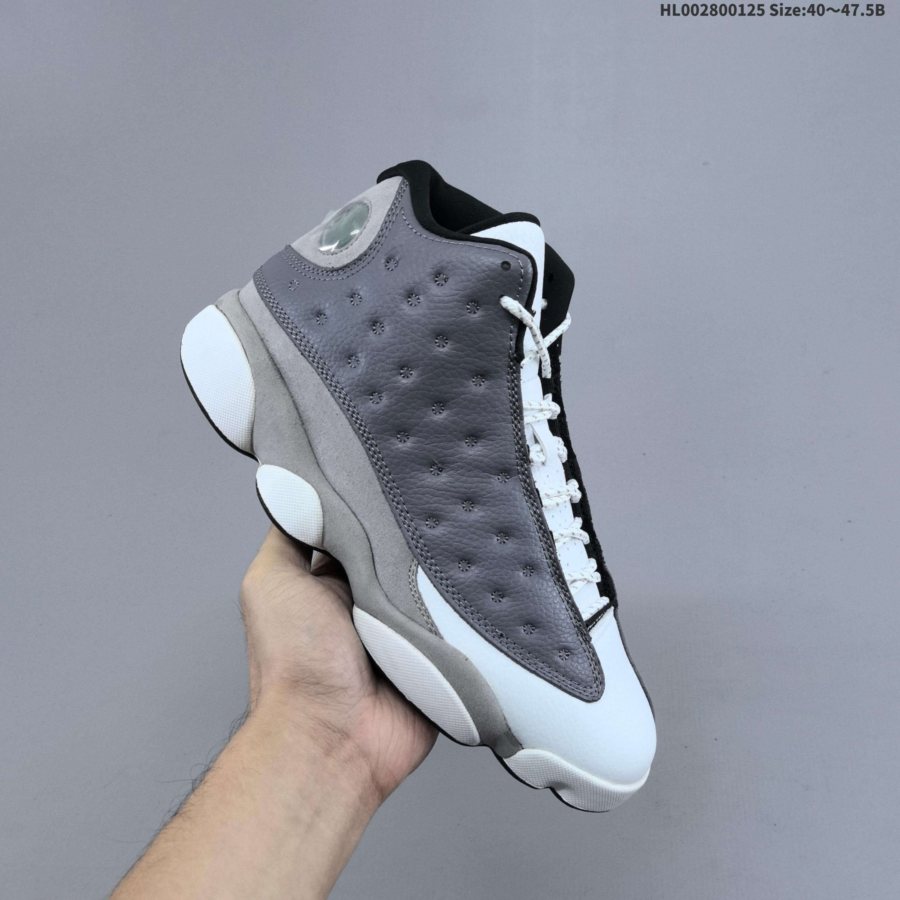 💰280 公司级 Air Jordan 13 Retro "Atmosphere Grey" 高帮 雾霾灰 AJ13 乔丹13代 aj13 乔13 高邦 元祖灰 乔丹篮球鞋系列 鞋身大面积灰色荔枝纹材质打造,并以白色皮革点缀鞋面及鞋舌,营造出高端奢华的质感,鞋身中下部以灰色麂皮覆盖,凸显球鞋质感;鞋面灰色绣标上点缀白色Jordan字样,中底植绒部位与后跟包覆均采用灰色色调示人,鞋舌上Jumpman Logo与鞋头标签、外底则辅以黑色点缀,后跟的3D猫眼则是Air Jordan 13点睛之笔,进一步提升鞋款醒目程度。最后以灰色中底搭配白色橡胶外底完善整体设计收尾。 货号:414571-016(2019.03.23发售) 尺码:40 40.5 41 42 42.5 43 44 44.5 45 46 47.5 HL002800125 Size:40~47.5B