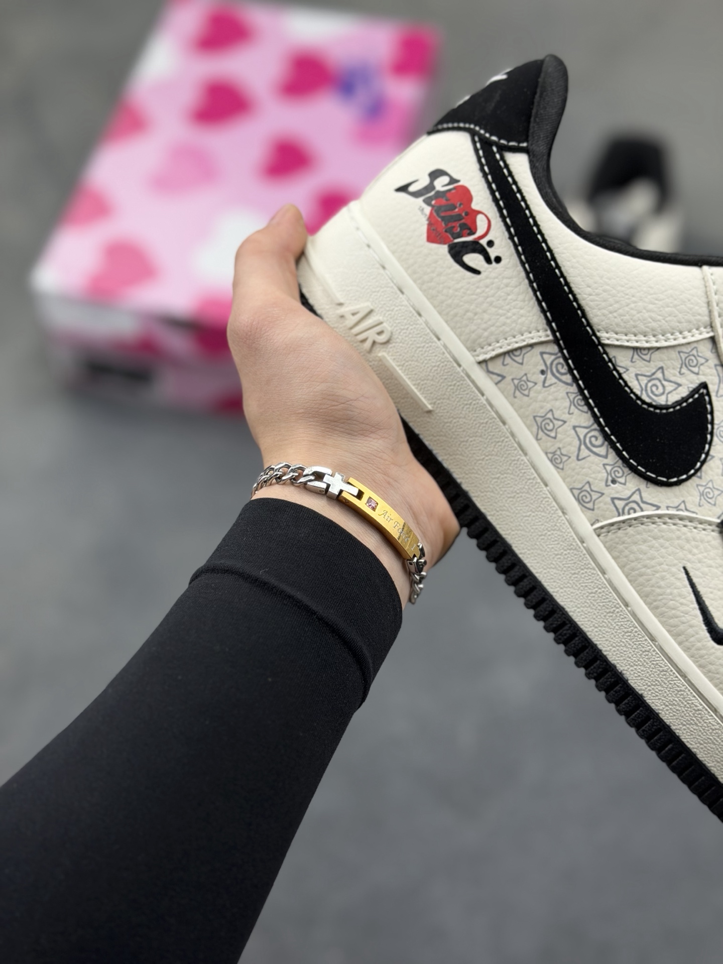 本地自取💰230 情人节主题!Nike Air Force 1 Low(斯图西联名) 空军一号 爆款高端定制 爱心锁扣+星星涂鸦,把甜酷焊在鞋上,日常出街氛围感直接拉满! 鞋身布满星星涂鸦图案,搭配心形金属挂饰,后跟印有“Stussy”爱心涂鸦字样,米白搭配黑色细节点缀,整体风格契合情人节浪漫。 定制鞋盒 大厂纯原品质出货 超高清洁度 皮料切割干净无任何毛边 细节完美 货号:DW8806-006 Size:36 36.5 37.5 38 38.5 39 40 40.5 41 42 42.5 43 44 44.5 45