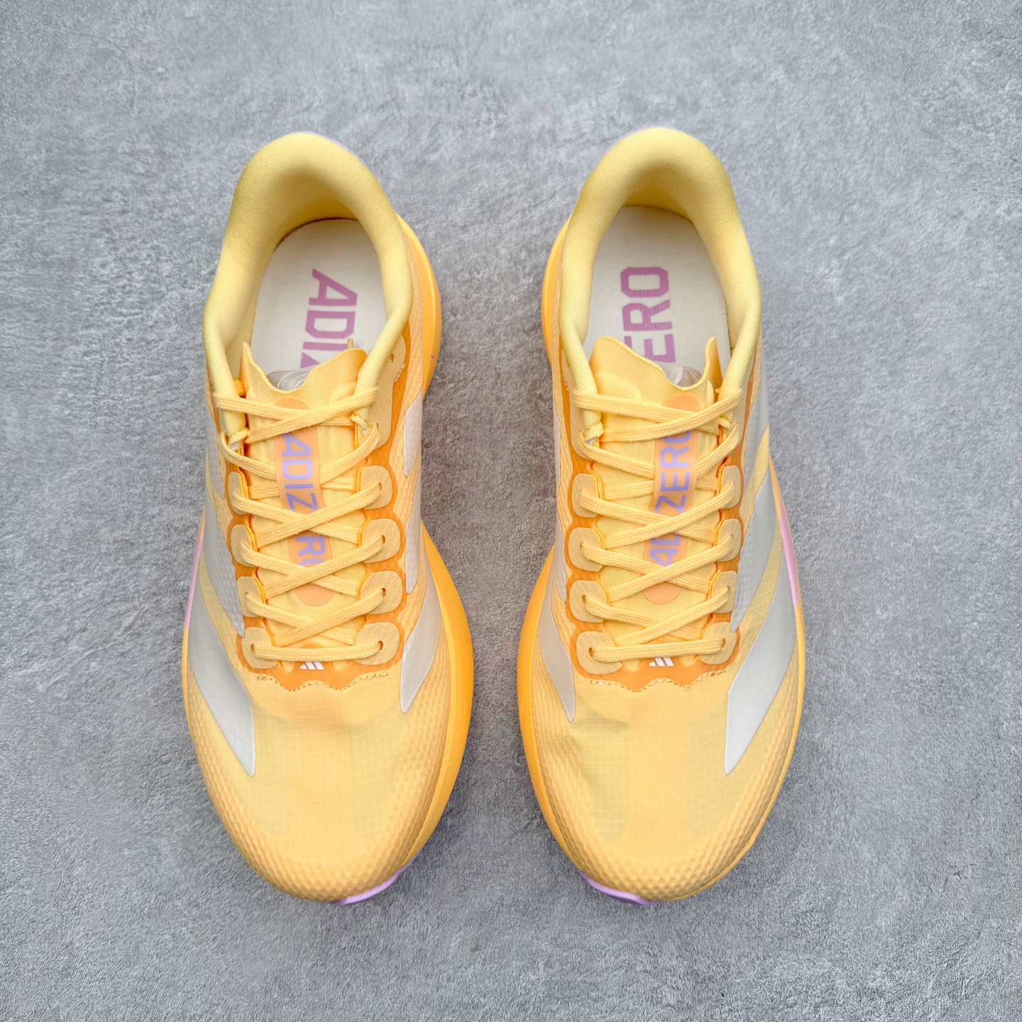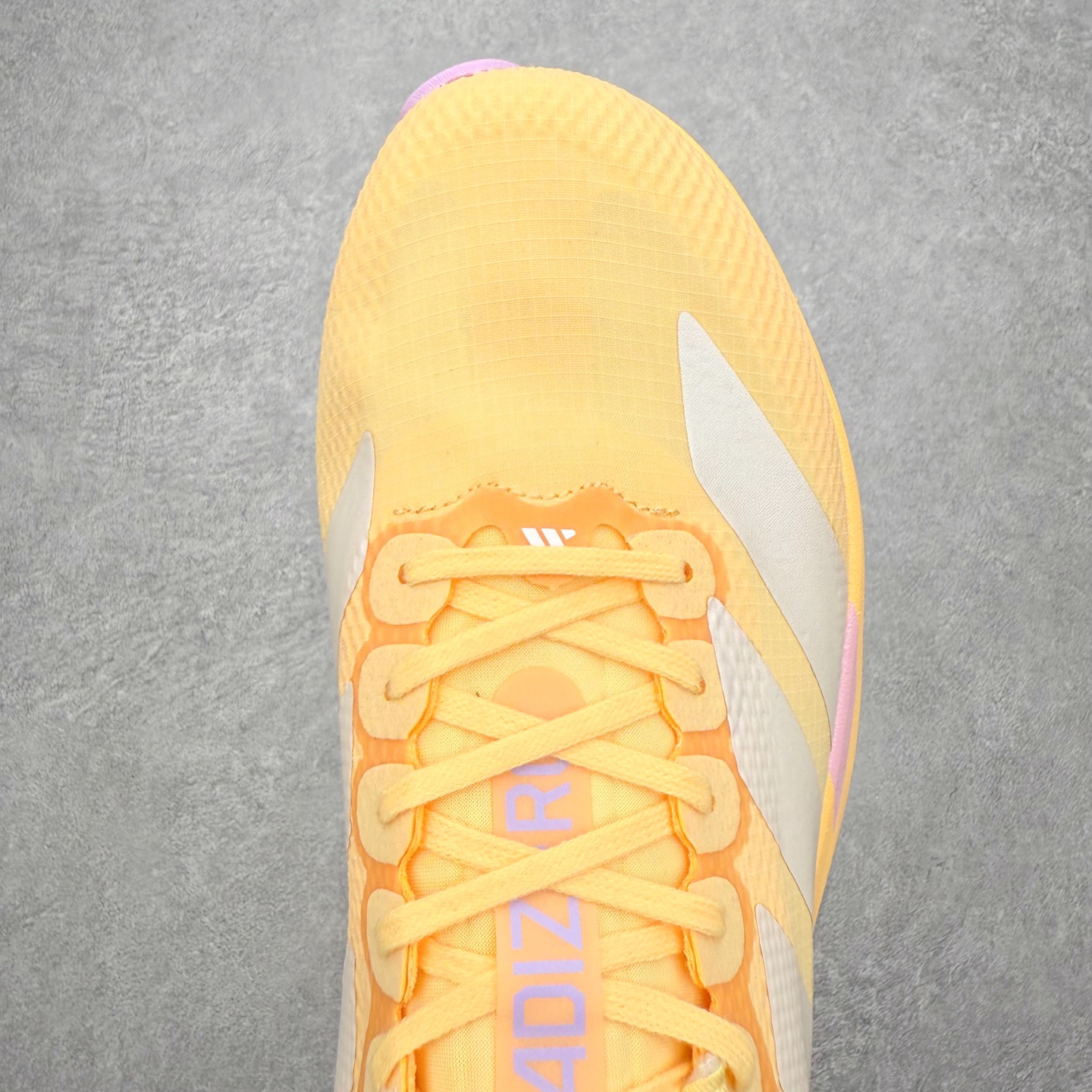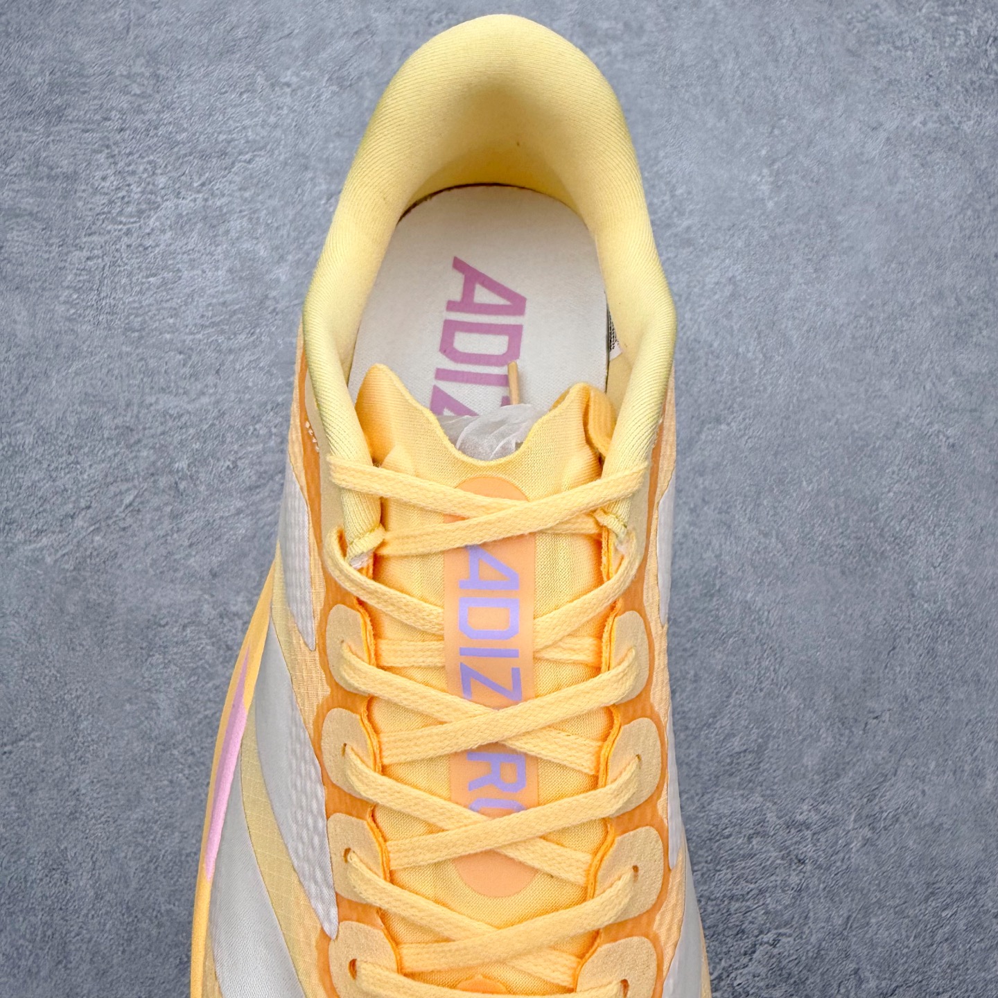 💰180 AD Adizero EVO SL 2 马拉松竞速专业跑鞋 CELERMESH针织网面非常轻薄 纤维间的缝隙很大 可以保证跑步时的透气、排汗效果 鞋舌直接与两侧的内衬和鞋底连接在一起 在跑步过程中不会被鞋舌的左右移动所困扰 在标准鞋带孔的基础上再拓宽一组鞋带孔 适合不同脚型的需求 突破性 EnergyRods 技术,有助于跑者实现更好的成绩 中底独特的LIGHTSTRIKE PRO泡棉材质 微弹感觉在跑步过程中给予了良好的支撑体验 对于顶级精英和高水平进阶跑者来说 ADIOS PRO是一双值得信赖的竞速比赛用鞋 SIZE:36 36.5 37.5 38 38.5 39 40 40.5 41 42 42.5 43 44 44.5 45 编码:Cby2936010