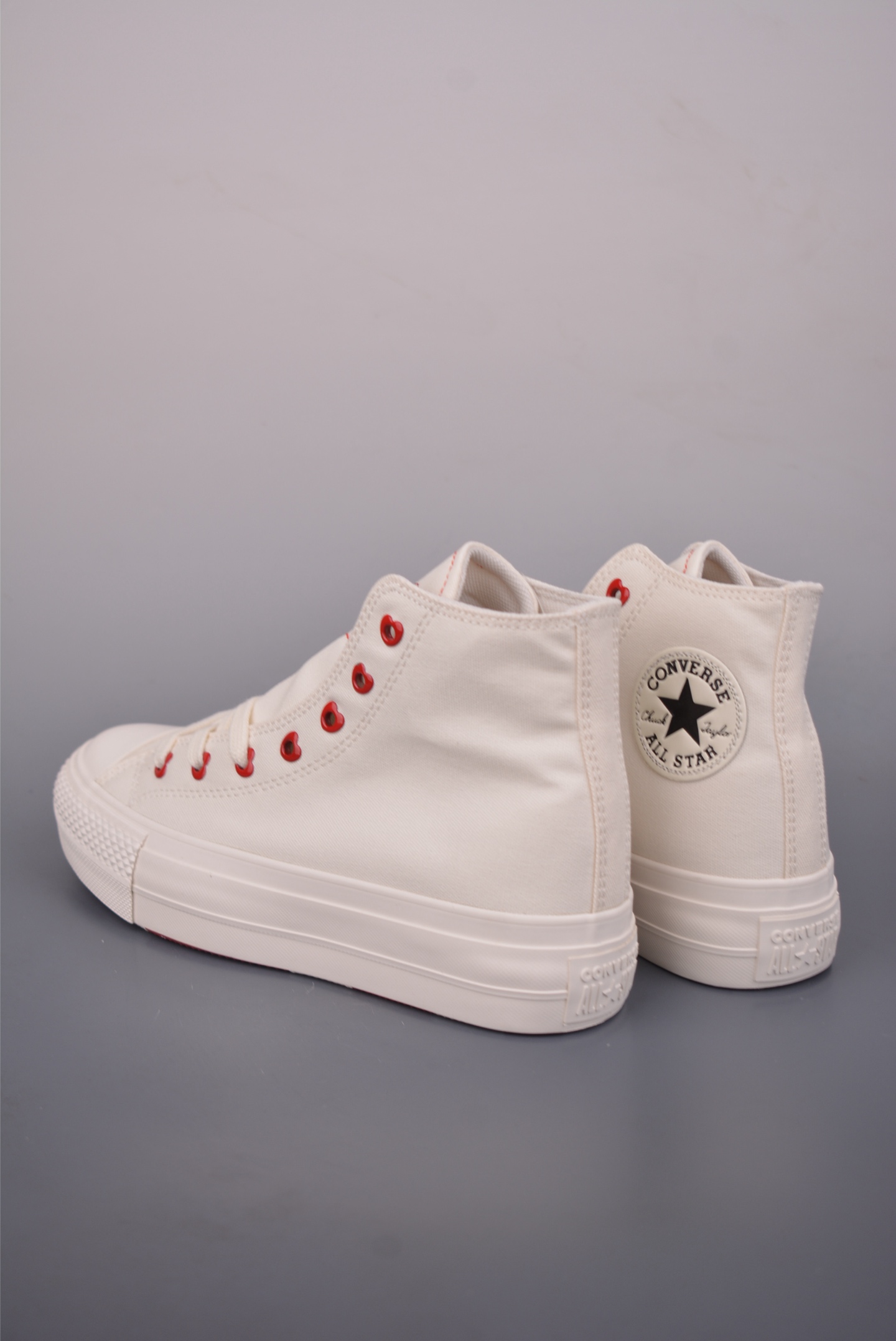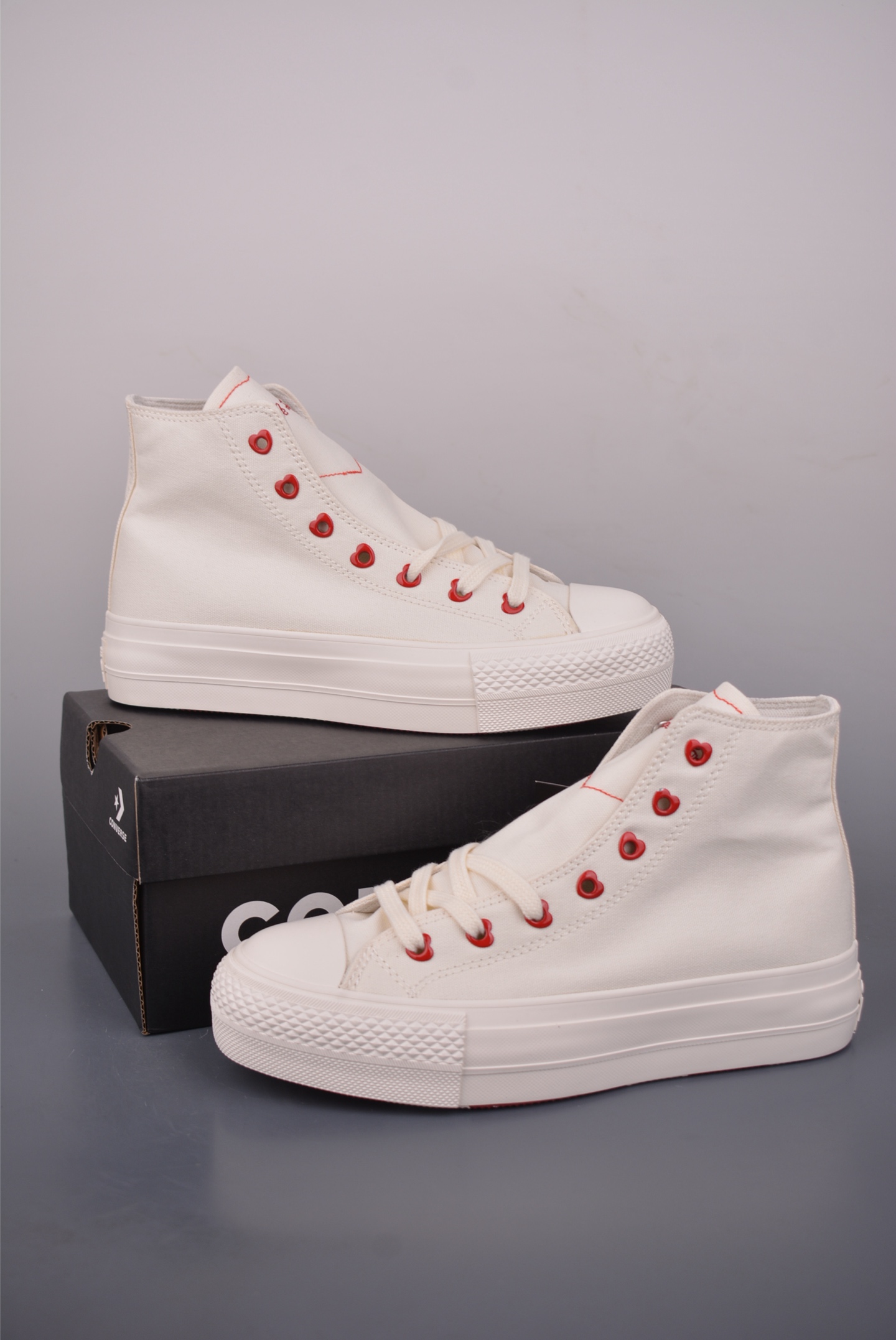 💰130 Converse All Star Lift 情人节限定 匡威官方 挚爱同心系列休闲帆布鞋 经典All Star鞋型,奶fufu的白色鞋身,搭配小红心刺绣温柔又俏皮。鞋舌的爱心包边设计搭配红色手写Logo,氛围感拉满。厚底悄悄增高显腿长,小个子也能拥有漫画腿。经典高帮版型百搭不挑人,配裙子裤子都出彩。 货号:A19058C 尺码:35 36 36.5 37 37.5 38 39 40