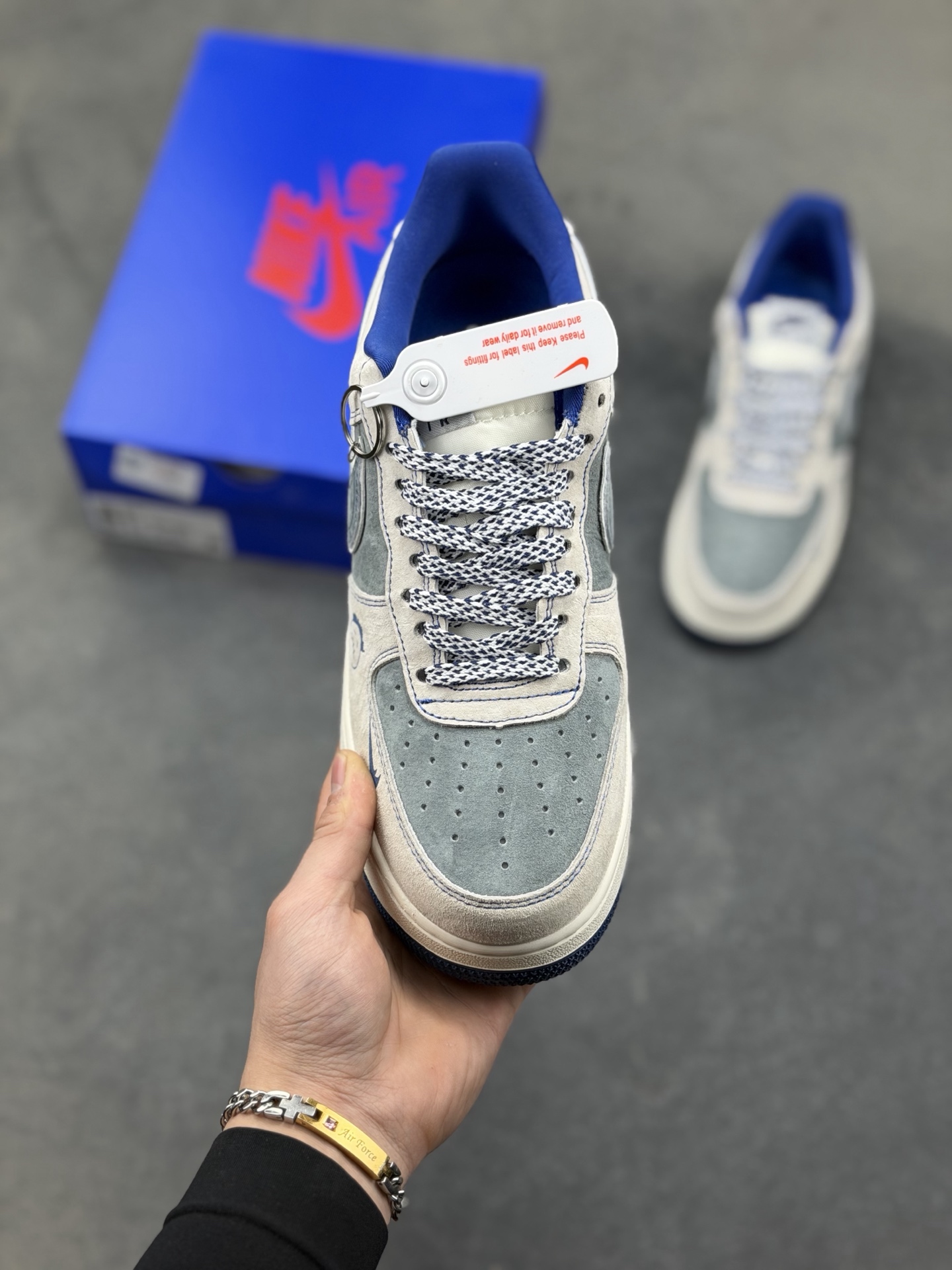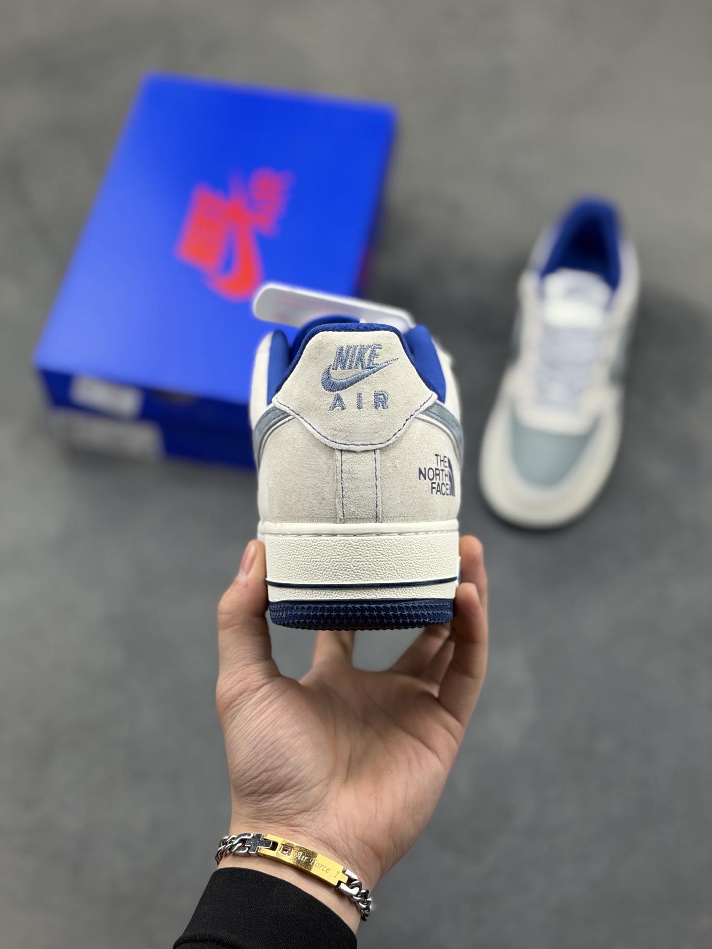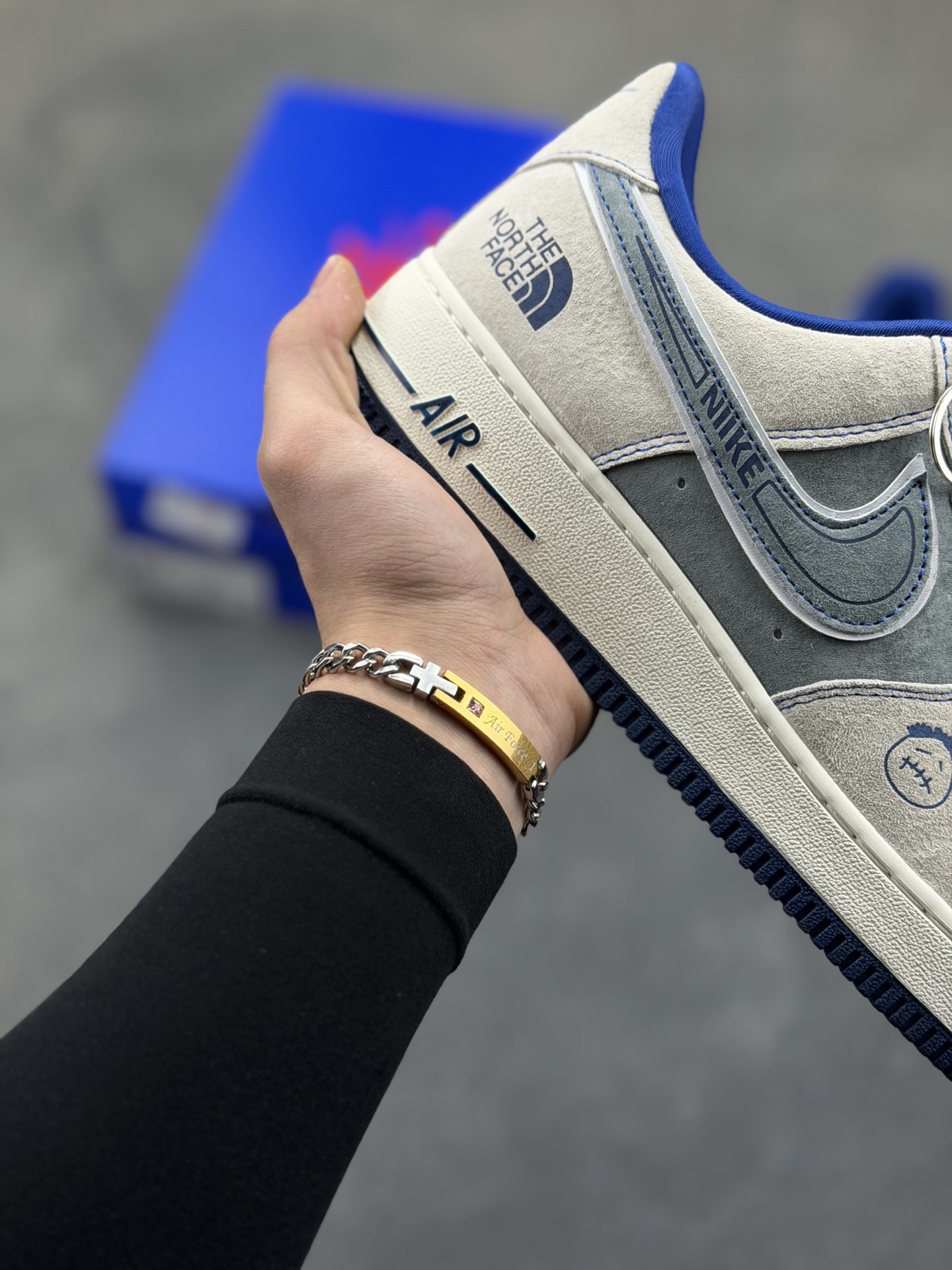 本地自取💰230 🌊 Nike Air Force 1 Low × The North Face「雾蓝山系」|把户外基因焊在街头 这双SY1388-026是Air Force 1与北面的跨界联名款,用雾蓝渐变麂皮拼接山系元素,将户外机能感与AF1的经典街头基因完美融合,既是能应对日常通勤的潮流单品,也是藏着户外探索精神的小众宝藏鞋款。 ✨ 设计深扒:街头与山系的双向奔赴 - 材质与配色:以浅米麂皮为基底,雾蓝与深灰麂皮拼接出层次丰富的山系视觉,像清晨山间的雾霭与岩壁的碰撞;鞋侧的双勾设计用蓝白线条勾勒,呼应北面的户外标识,低调中暗藏联名细节。 Size:36 36.5 37.5 38 36.5 39 40 40.5 41 42 42.5 43 44 44.5 45