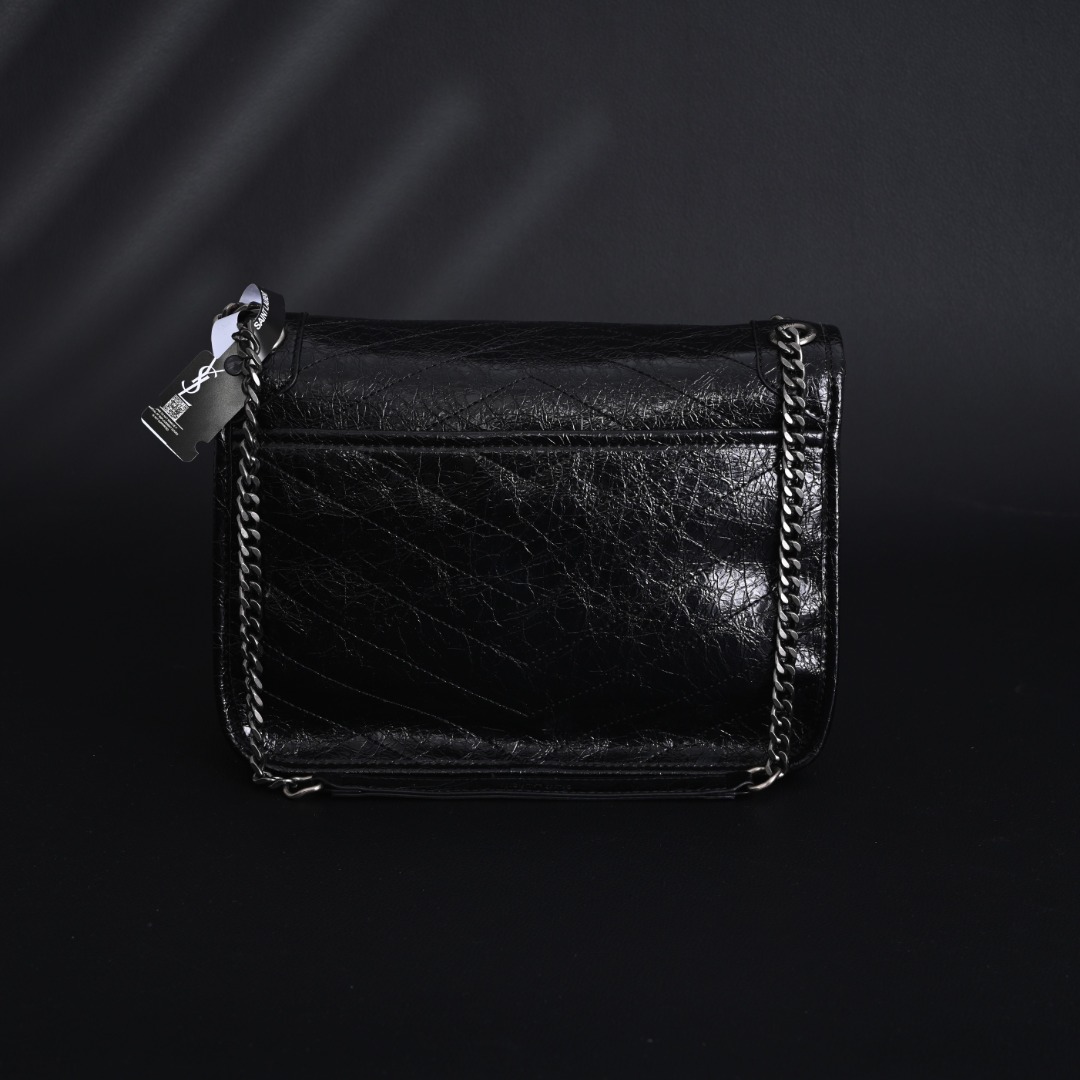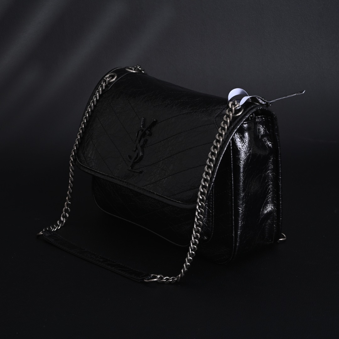 本地自取💰380 圣罗兰YSL Niki 银链黑标Logo复古褶皱D扣流浪包 黑色 YSL 家的必入的黑色 niki 人间值得 YSL 圣罗兰黑色 niki Niki 皱巴巴的小🐂皮摸起来非常柔软 随意的蹂躪折腾不变形 做旧五金链条⛓很有复古的味道 更体现了 YSL Niki独一无二的魅力 容量大 出行方便 黑色百搭耐看 多种背法:可单肩、可斜挎、可流浪式 Niki绝对是吃土也要入的一款万能包台上身绝对酷、美。 中号:28*20*8.5cm 圣罗兰包包