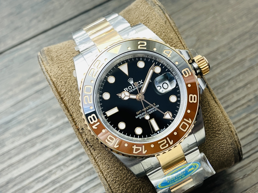 【CLEAN Factory2024最新力作 超级复刻 墙裂推荐】厚积薄发 重新定义劳力士Rolex格林尼治ll(搭cal.两种机芯3186一体机)升级版12670腕表惊艳登场!细节方面: 1⃣️机芯3186采用是一体机芯蓝游丝和原版同样通过调试时针快跳调整日历的功能瞬跳,和原版一样的GMT双时区表针在底部时针上面的第二层,由下到上的顺序为:时针-双时区针-分钟-秒钟。 2⃣️指针;升级电镀白金在任何角度都可以看见其光泽感 采用特殊针尖工艺 确保与原装一致夜光粉选用瑞士进口蓝绿夜光填充完美还原夜光效果! 3⃣️表盘;原装开模 立体印刷 电镀白金 中心轴下沉 日历下沉 字体大小与颜色同原装完全一致包括条丁四角的打磨 12字位火山口打磨都做到了高度一致! 4⃣️圈口;此款表的灵魂所在 也是本厂花费大量时间与精力的地方 每一次的烧制都是一次进步 本厂圈口一体成型高精密陶瓷圈色差也是必须降到最低 深蓝黑圈/红蓝圈/黑圈/真陶瓷均为白金填充,其颜色目前是最接近原装的! 5⃣️日历;新版劳力士日历采用新款勾4,C厂加以借鉴避开市场众多错误版本,日历的字体印刷相当清晰立体,放大十倍依旧清晰立体 无锯齿! 6⃣️表壳表带;选用904L钢材铸胚,在反复手工打磨成型,904L钢密度小 耐腐蚀性强 防刮耐磨等优点。整体观感显现出低调上又奢侈感! CLEAN Factory2024匠心力作 演绎经典 成就佳作 欢迎各路表友品鉴!