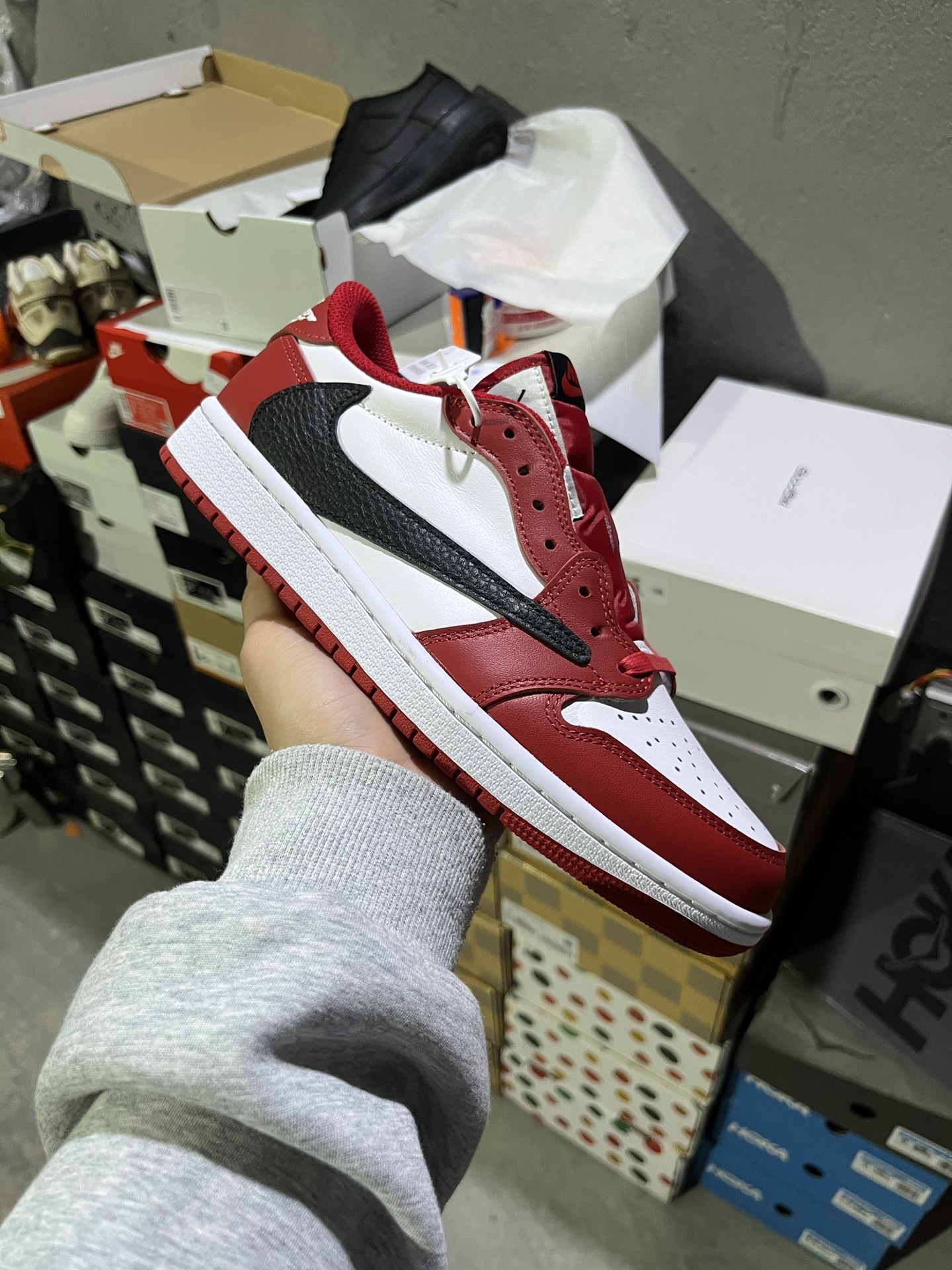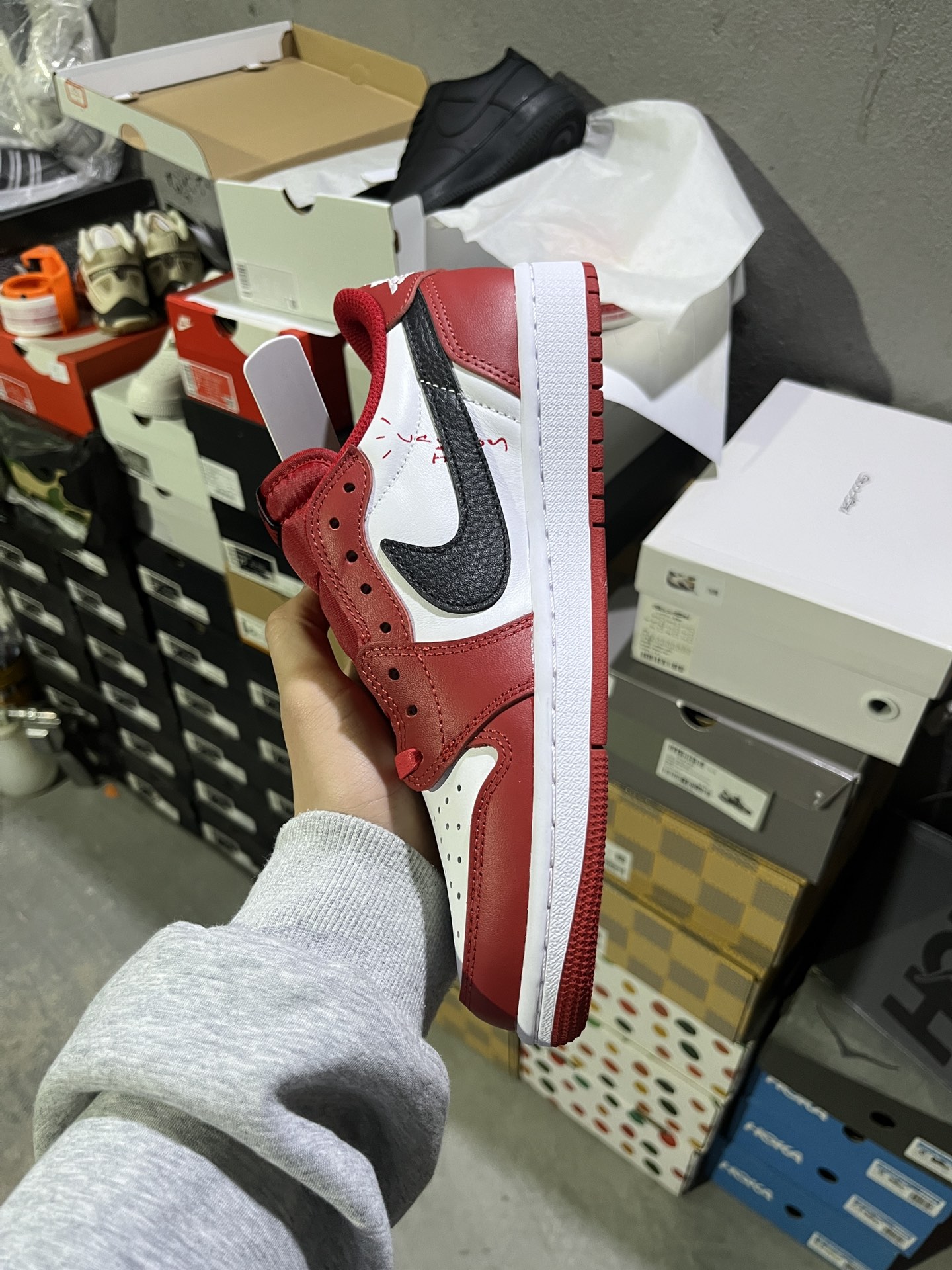 #实拍鉴赏 #仓库随手拍上新 #新F版/KZ纯原 💰180 Travis Scott x Jordan Air Jordan 1 倒钩7.0 Low 联名款 芝加哥 经典 潮流 百搭 减震 低帮 复古休闲鞋 男女同款 红色 货号:DZ4137-700 尺码:36-47