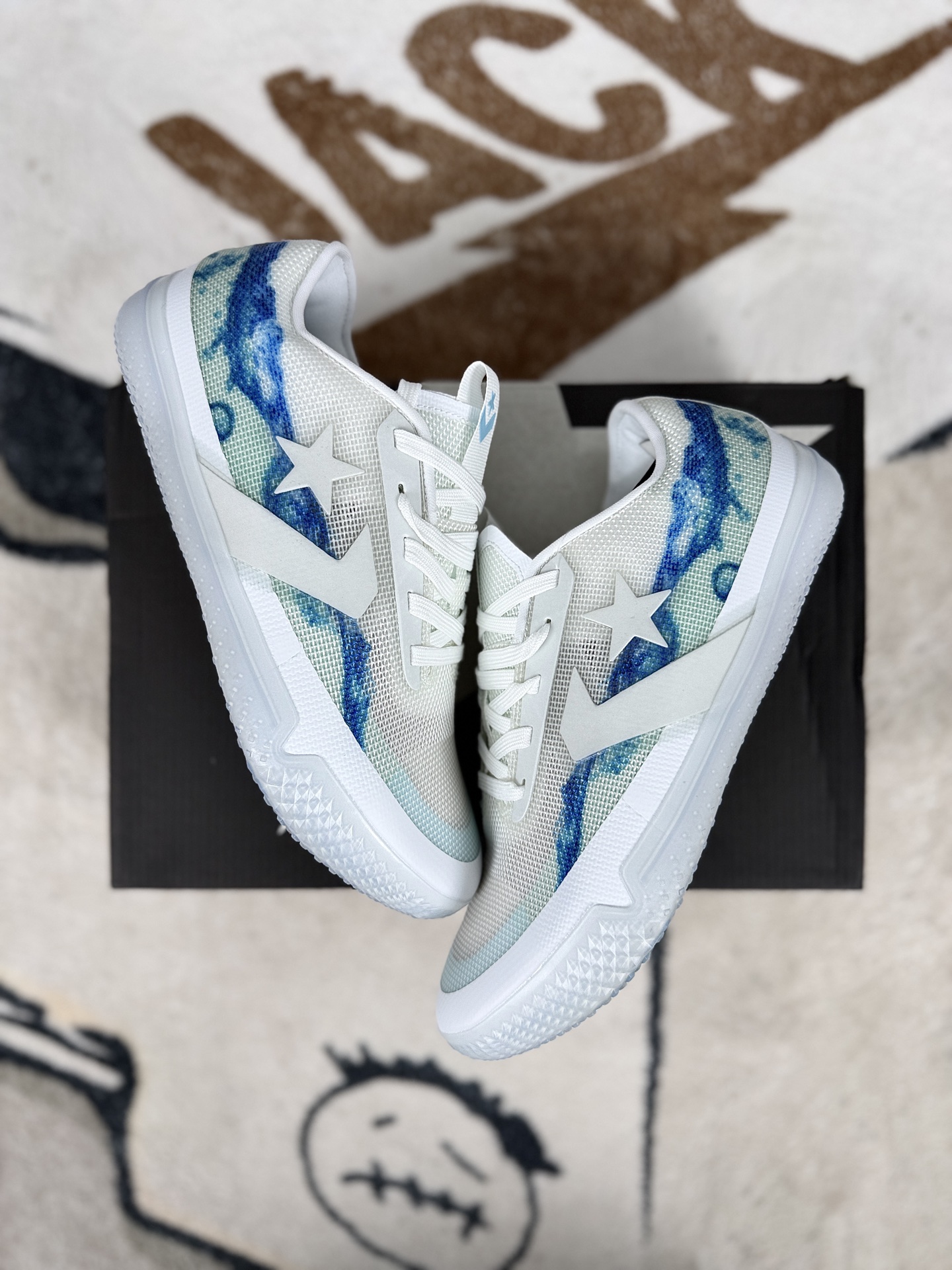‼️福利清仓特价原本地260 现特价 ▪️私人纯原订单 Converse All Star Pro BB 舒适百搭 低帮 实战篮球鞋 男女同款 白蓝 ▪️尺码:39-46(39 40 40.5 41 42 42.5 43 44 44.5 45 46) ▪️货号:169085C ▪️Converse All Star Pro BB是匡威(Converse)于2019年正式回归专业篮球鞋领域的首款产品,融合了匡威经典设计与耐克(Nike)的科技支持。延续了匡威All Star系列的经典轮廓,保留了高帮设计、帆布鞋面以及鞋舌处的圆形盾标,同时融入了现代篮球鞋的元素,如鞋面外侧的“星箭”logo(致敬经典Pro Leather系列)、透明热压加固材质以及扁平鞋带设计,整体造型既具有复古情怀,又不失现代感。采用Nike React缓震科技,鞋垫与中底合为一体,形成可抽取式的模块化设计。全掌React材质提供了柔软且富有韧性的脚感,能够有效吸收冲击力,适合小体重或中等体重的球员在日常训练或轻度比赛中穿着。鞋面主要由QuadFit织物和帆布材质拼接而成,QuadFit织物具有轻薄、透气的特点,能够贴合脚型并减少摩擦,同时帆布材质则提供了额外的耐用性和复古质感。部分区域(如鞋头、鞋带孔和接缝处)采用热压材质加固,增强了鞋面的稳定性。外底采用透明水晶底,搭配大小各异的菱形凸起纹路,在室内木地板场地的抓地性能表现出色,能够提供良好的摩擦力,减少侧滑现象。适合小体重或中等体重的后卫、锋线球员,以及对篮球鞋的时尚外观有较高要求的消费者。