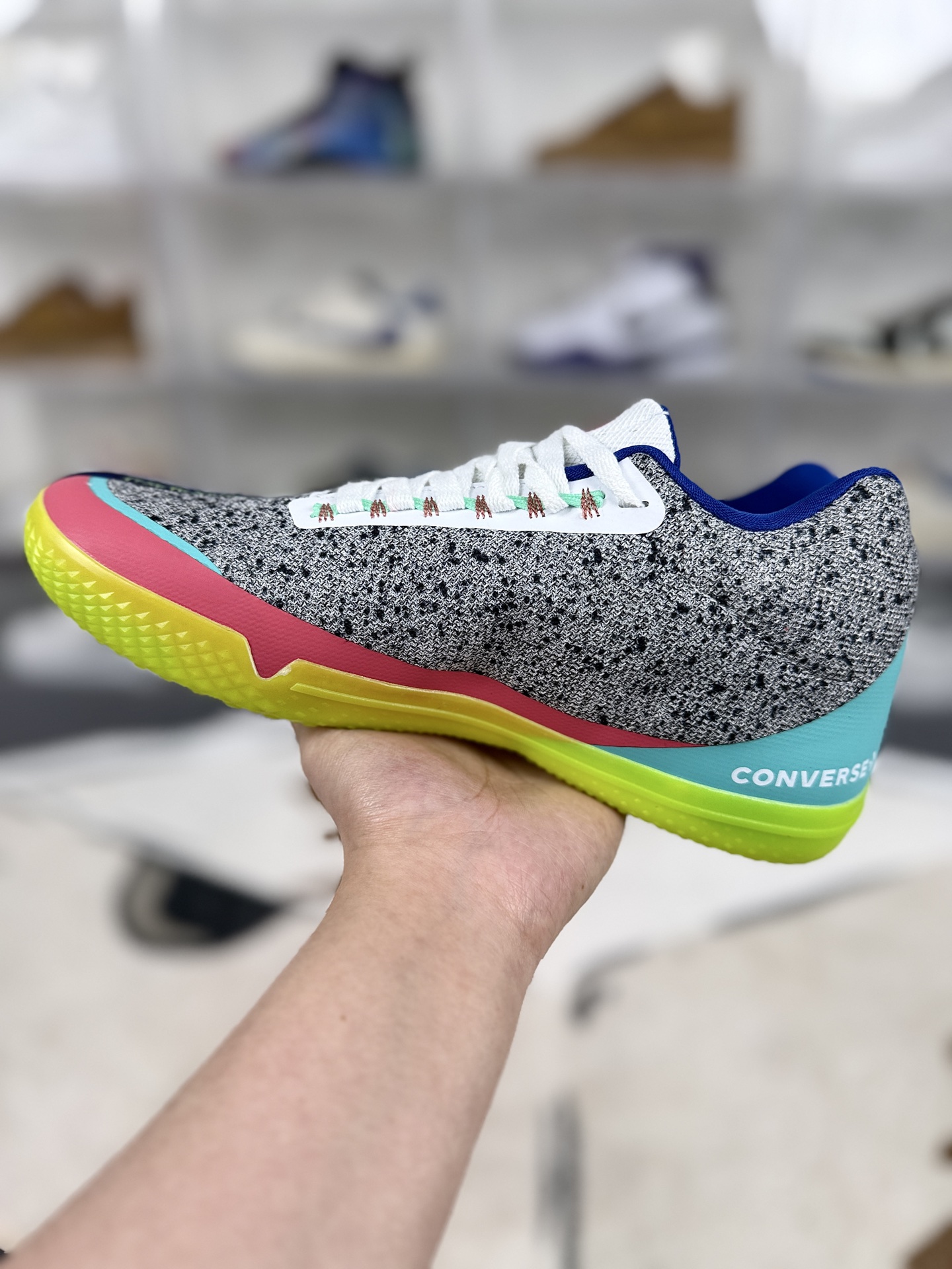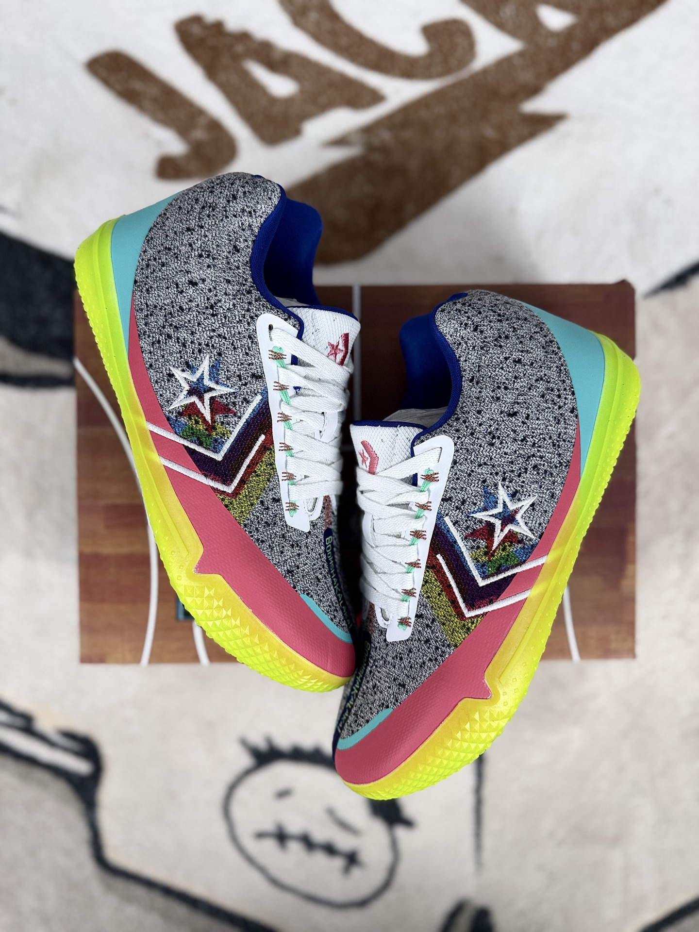 ▪️Converse All Star Pro BB是匡威(Converse)于2019年正式回归专业篮球鞋领域的首款产品,融合了匡威经典设计与耐克(Nike)的科技支持。延续了匡威All Star系列的经典轮廓,保留了高帮设计、帆布鞋面以及鞋舌处的圆形盾标,同时融入了现代篮球鞋的元素,如鞋面外侧的“星箭”logo(致敬经典Pro Leather系列)、透明热压加固材质以及扁平鞋带设计,整体造型既具有复古情怀,又不失现代感。采用Nike React缓震科技,鞋垫与中底合为一体,形成可抽取式的模块化设计。全掌React材质提供了柔软且富有韧性的脚感,能够有效吸收冲击力,适合小体重或中等体重的球员在日常训练或轻度比赛中穿着。鞋面主要由QuadFit织物和帆布材质拼接而成,QuadFit织物具有轻薄、透气的特点,能够贴合脚型并减少摩擦,同时帆布材质则提供了额外的耐用性和复古质感。部分区域(如鞋头、鞋带孔和接缝处)采用热压材质加固,增强了鞋面的稳定性。外底采用透明水晶底,搭配大小各异的菱形凸起纹路,在室内木地板场地的抓地性能表现出色,能够提供良好的摩擦力,减少侧滑现象。适合小体重或中等体重的后卫、锋线球员,以及对篮球鞋的时尚外观有较高要求的消费者。