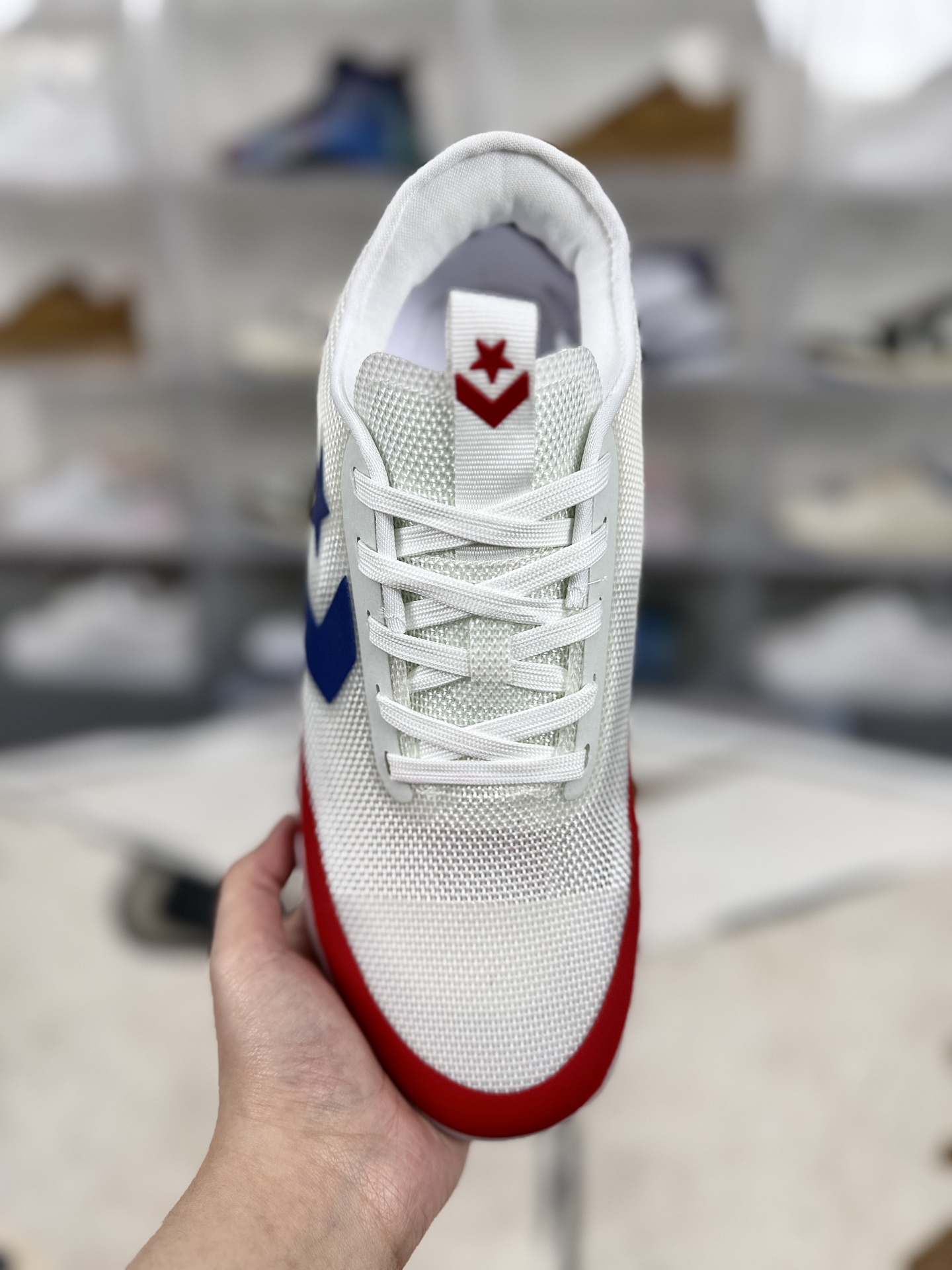 ‼️福利清仓特价原本地260 现特价 ▪️私人纯原订单 Converse All Star BB Evo 圆头 织物合成革 减震防滑耐磨包裹性支撑 低帮 实战篮球鞋 男女同款 白蓝红 ▪️尺码:39-46(39 40 40.5 41 42 42.5 43 44 44.5 45 46) ▪️货号:167292C ▪️Converse All Star Pro BB是匡威(Converse)于2019年正式回归专业篮球鞋领域的首款产品,融合了匡威经典设计与耐克(Nike)的科技支持。延续了匡威All Star系列的经典轮廓,保留了高帮设计、帆布鞋面以及鞋舌处的圆形盾标,同时融入了现代篮球鞋的元素,如鞋面外侧的“星箭”logo(致敬经典Pro Leather系列)、透明热压加固材质以及扁平鞋带设计,整体造型既具有复古情怀,又不失现代感。采用Nike React缓震科技,鞋垫与中底合为一体,形成可抽取式的模块化设计。全掌React材质提供了柔软且富有韧性的脚感,能够有效吸收冲击力,适合小体重或中等体重的球员在日常训练或轻度比赛中穿着。鞋面主要由QuadFit织物和帆布材质拼接而成,QuadFit织物具有轻薄、透气的特点,能够贴合脚型并减少摩擦,同时帆布材质则提供了额外的耐用性和复古质感。部分区域(如鞋头、鞋带孔和接缝处)采用热压材质加固,增强了鞋面的稳定性。外底采用透明水晶底,搭配大小各异的菱形凸起纹路,在室内木地板场地的抓地性能表现出色,能够提供良好的摩擦力,减少侧滑现象。适合小体重或中等体重的后卫、锋线球员,以及对篮球鞋的时尚外观有较高要求的消费者。