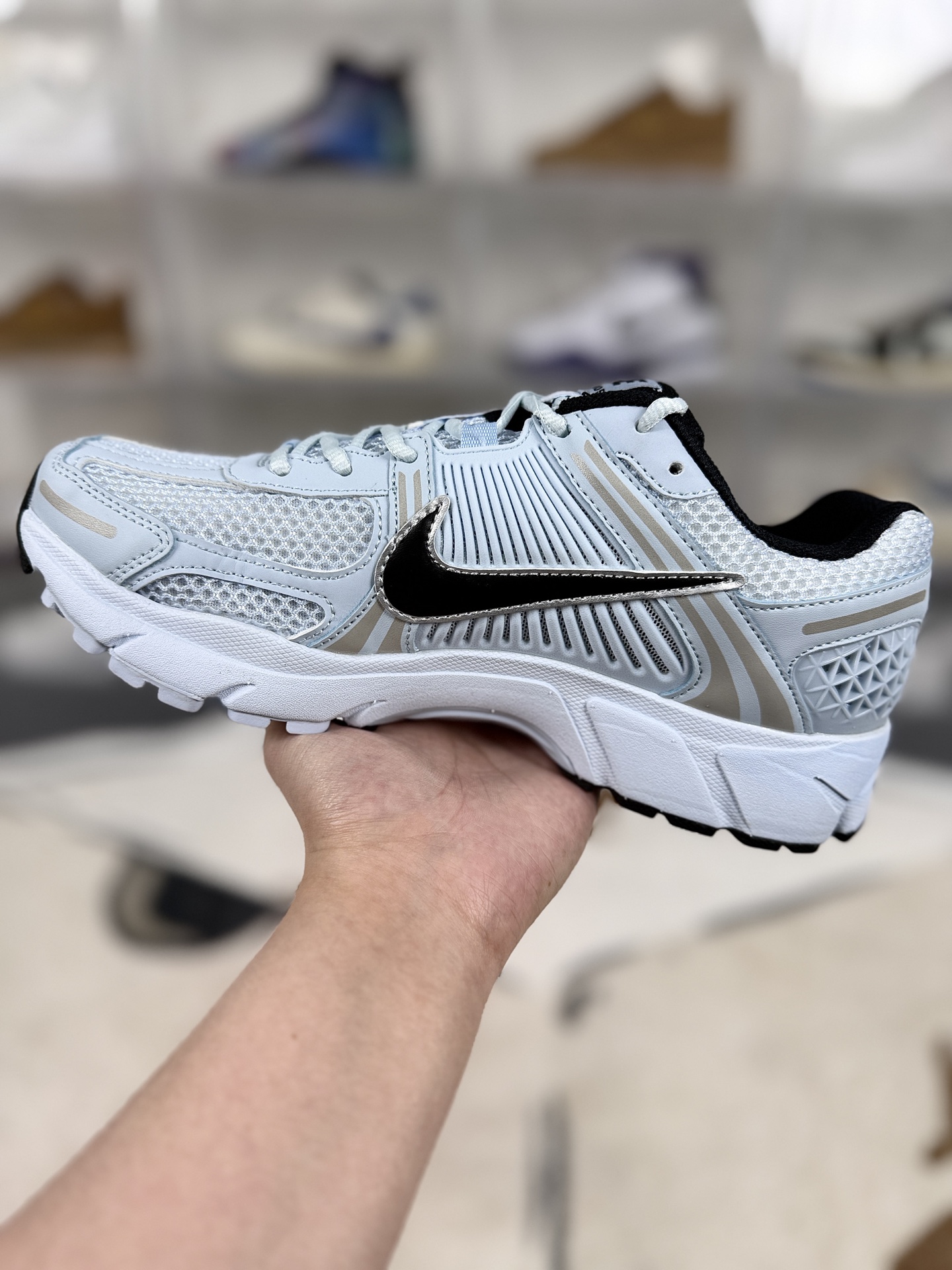 本地💰160 ▪️匠心纯原 原厂四层组合底 Nike Air Zoom Vomero 5 防滑耐磨透气 低帮 休闲训练城市通勤跑步鞋 男女同款 雾霾蓝 ▪️尺码:35.5-46(35.5 36 36.5 37.5 38 38.5 39 40 40.5 41 42 42.5 43 44 44.5 45 46) ▪️货号:FJ2028-401 ▪️Nike Air Zoom Vomero 5是一款融合复古美学与现代科技的运动鞋。采用复古未来主义设计语言,鞋面由网眼布与合成材质拼接,结合皮革元素,营造层次感与精致感。后跟采用Zoom XReact泡棉,前掌搭载Air Zoom气垫,提供出色的缓震与回弹性能,实现快速离地。后跟中足有TPU贴片,侧边塑料鞋笼增强稳定性,外底橡胶贴片提升抓地力。独特鞋底轮廓、侧面Swoosh标志及塑料鞋笼设计,兼具时尚感与功能性,适合健身房或街头穿搭。