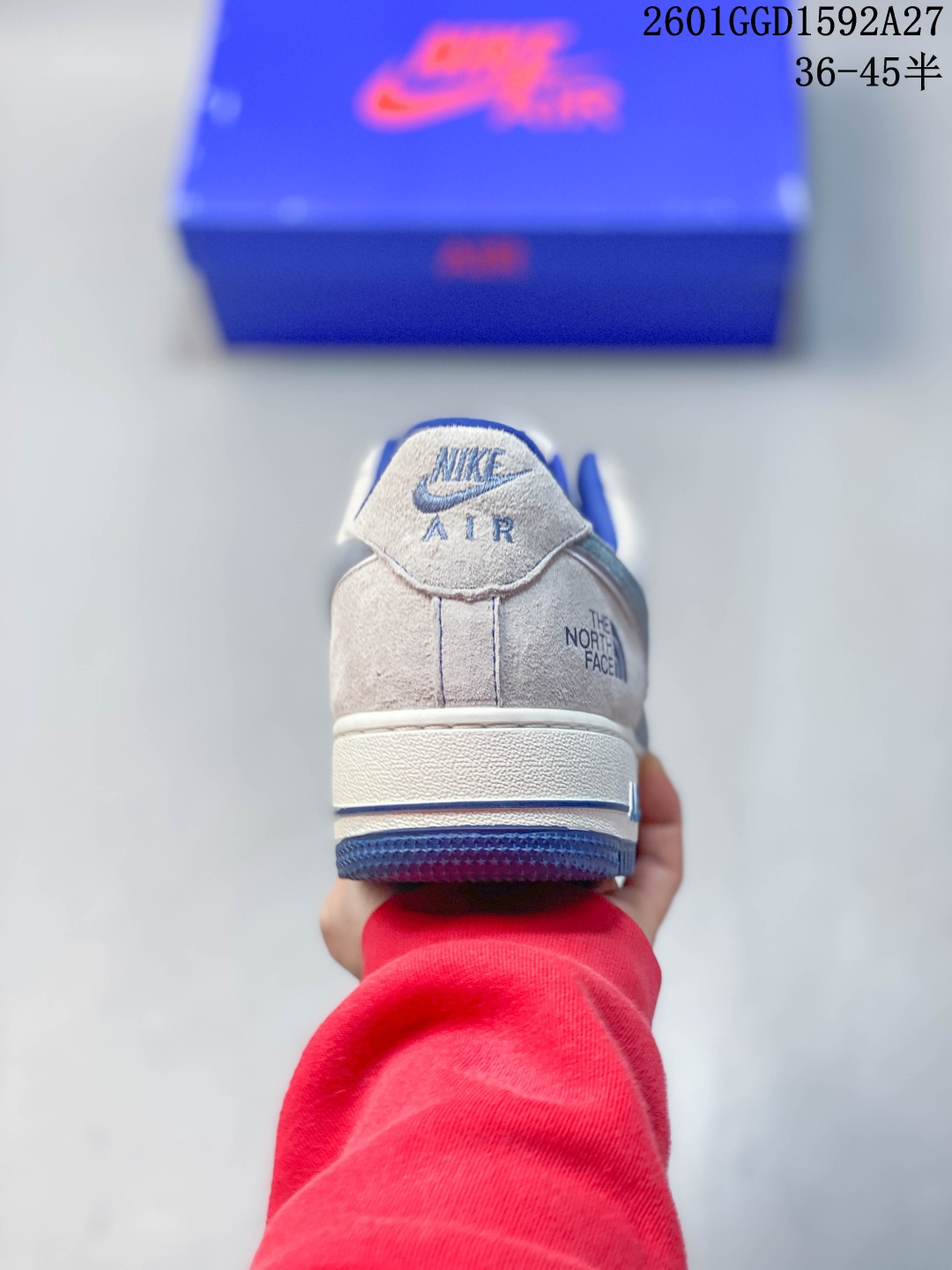 💰240 🌊 Nike Air Force 1 Low × The North Face「雾蓝山系」|把户外基因焊在街头 这双SY1388-026是Air Force 1与北面的跨界联名款,用雾蓝渐变麂皮拼接山系元素,将户外机能感与AF1的经典街头基因完美融合,既是能应对日常通勤的潮流单品,也是藏着户外探索精神的小众宝藏鞋款。 ✨ 设计深扒:街头与山系的双向奔赴 - 材质与配色:以浅米麂皮为基底,雾蓝与深灰麂皮拼接出层次丰富的山系视觉,像清晨山间的雾霭与岩壁的碰撞;鞋侧的双勾设计用蓝白线条勾勒,呼应北面的户外标识,低调中暗藏联名细节。 Size:36 36.5 37.5 38 36.5 39 40 40.5 41 42 42.5 43 44 44.5 45 01GGD1592A37