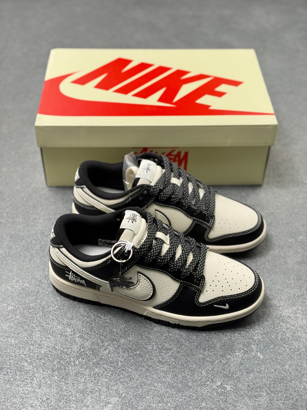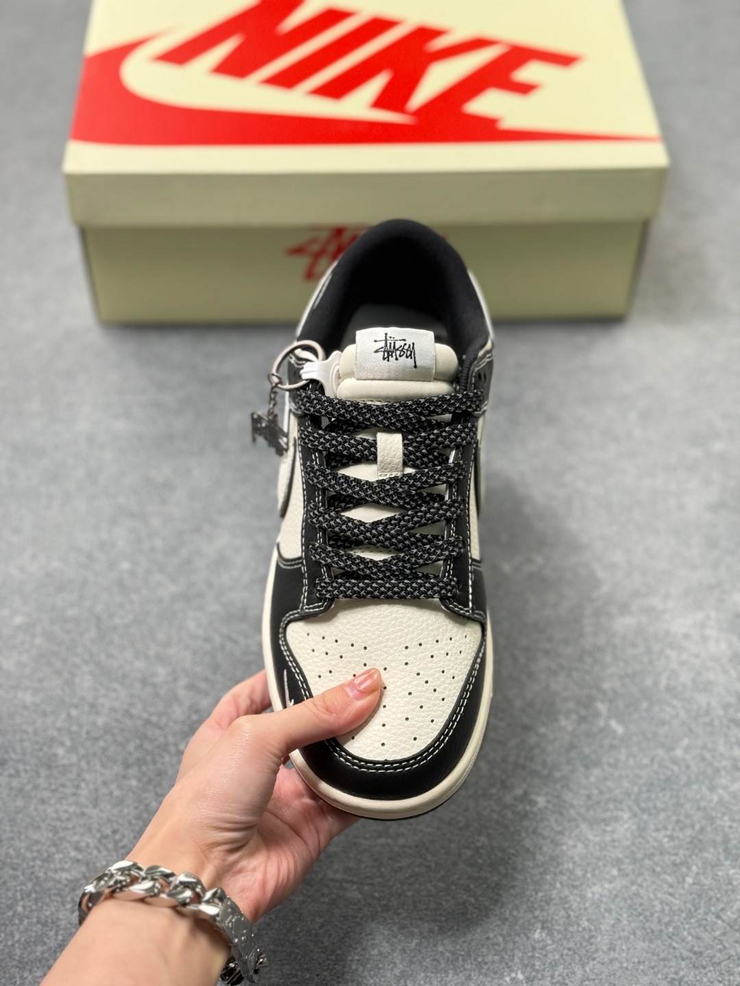 💰240 Stüssy联名 街头符号 SB DUNK LOW 黑白配色经典百搭,Stüssy手写体Logo遍布鞋身,金属挂饰增添质感。帆布与皮革拼接保证透气性,Zoom Air气垫提升缓震性能,是滑板爱好者与街头潮人的心头好。 货号:XX3168-181 Size:36 36.5 37.5 38 38.5 39 40 40.5 41 42 42.5 43 44 44.5 45x58